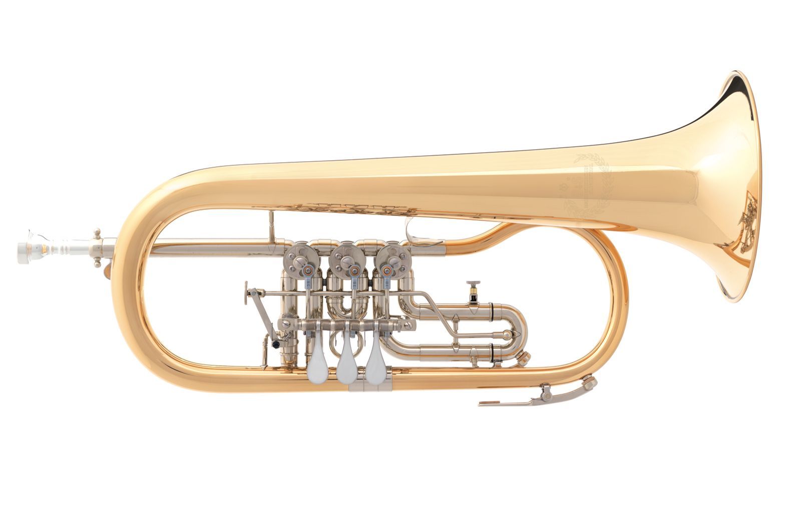 B&S 3017 2TR L in B Flügelhorn Goldmessing lackiert Durch die intensive Zusammenarbeit von international anerkannten Spitzenmusikern und kompetenten Instrumentenbauern wurden die qualitativ hochwertigen B+S Instrumente entwickelt. Rationelle und präzise Fertigungsmethoden garantieren eine einwandfre