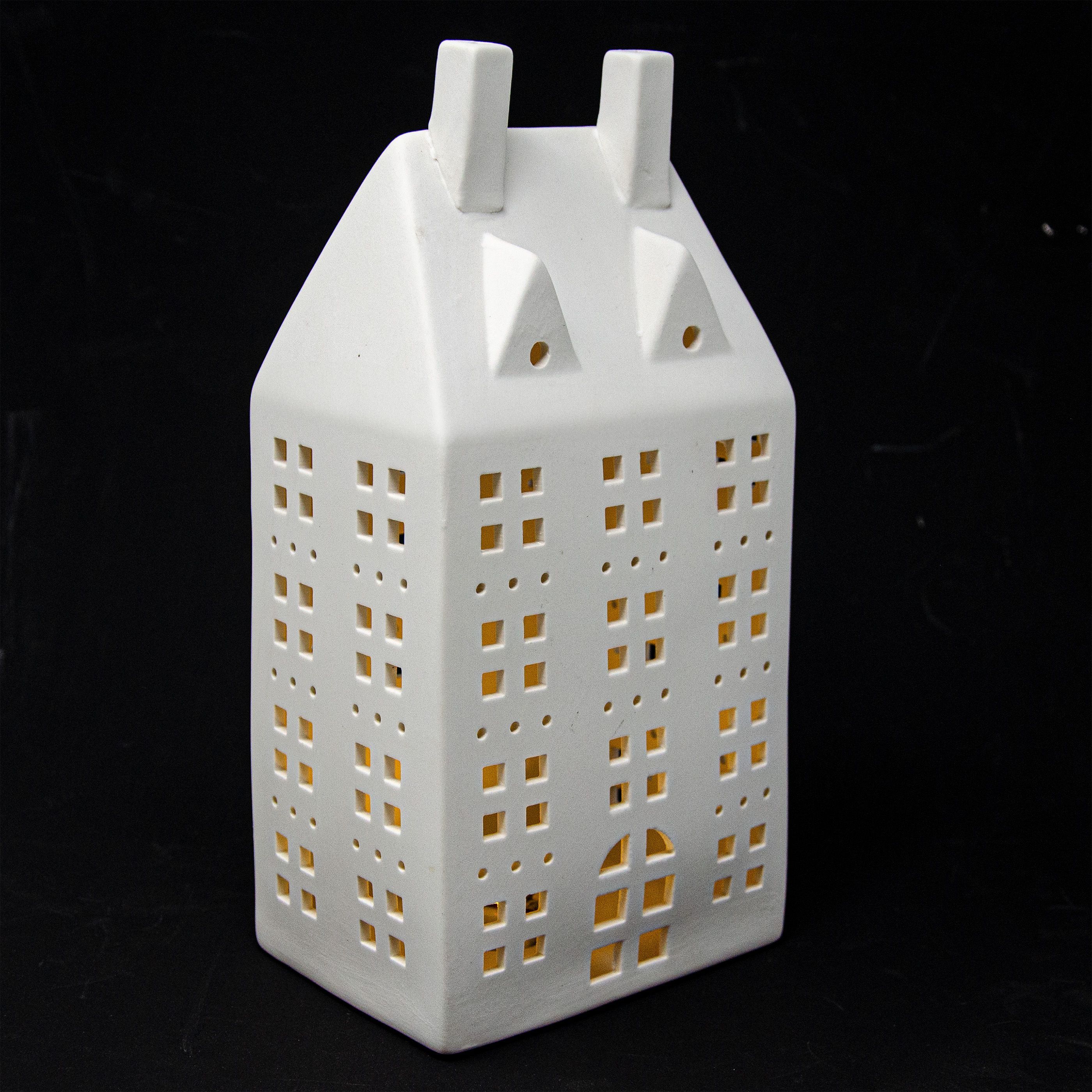 B&S LED Lichthaus Keramik H 26 cm matt weiß - Windlicht - LED Licht