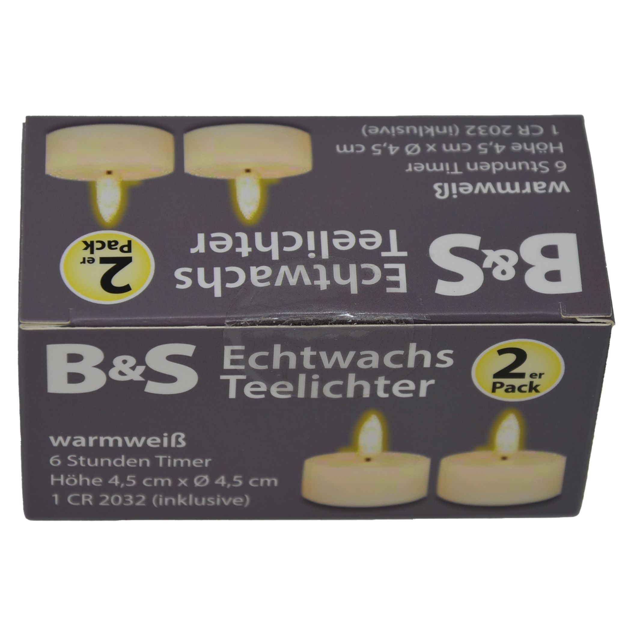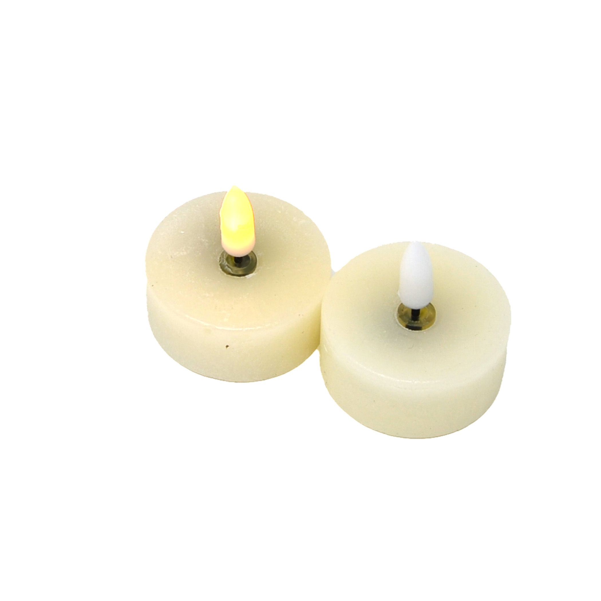 B&S LED Teelichter Echtwachs Flackereffekt 2er Set Creme Rund Ø 4,5 cm