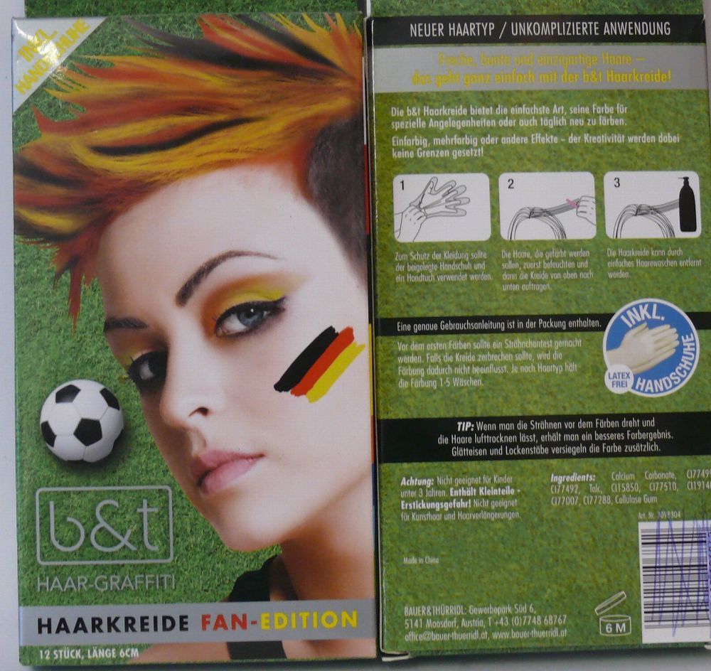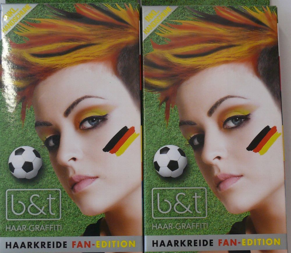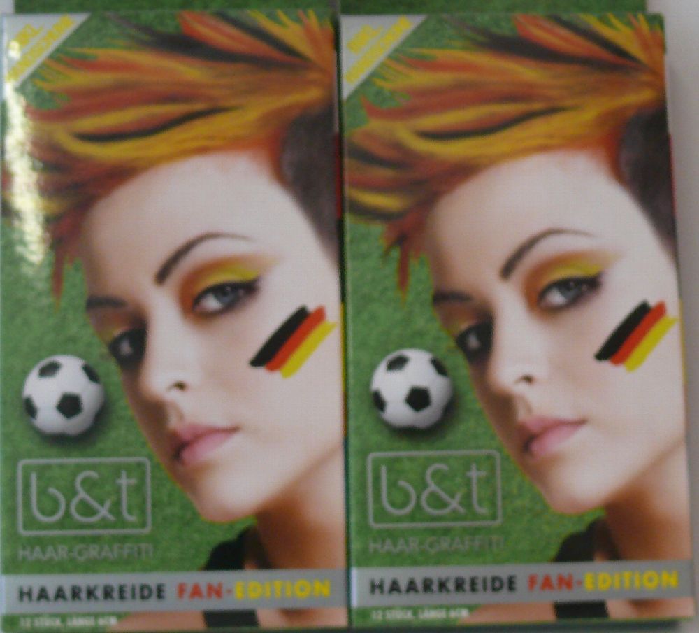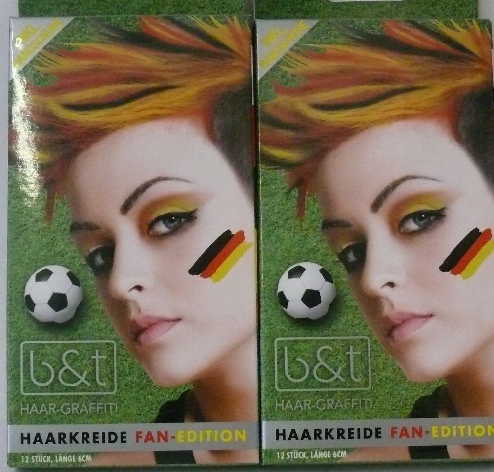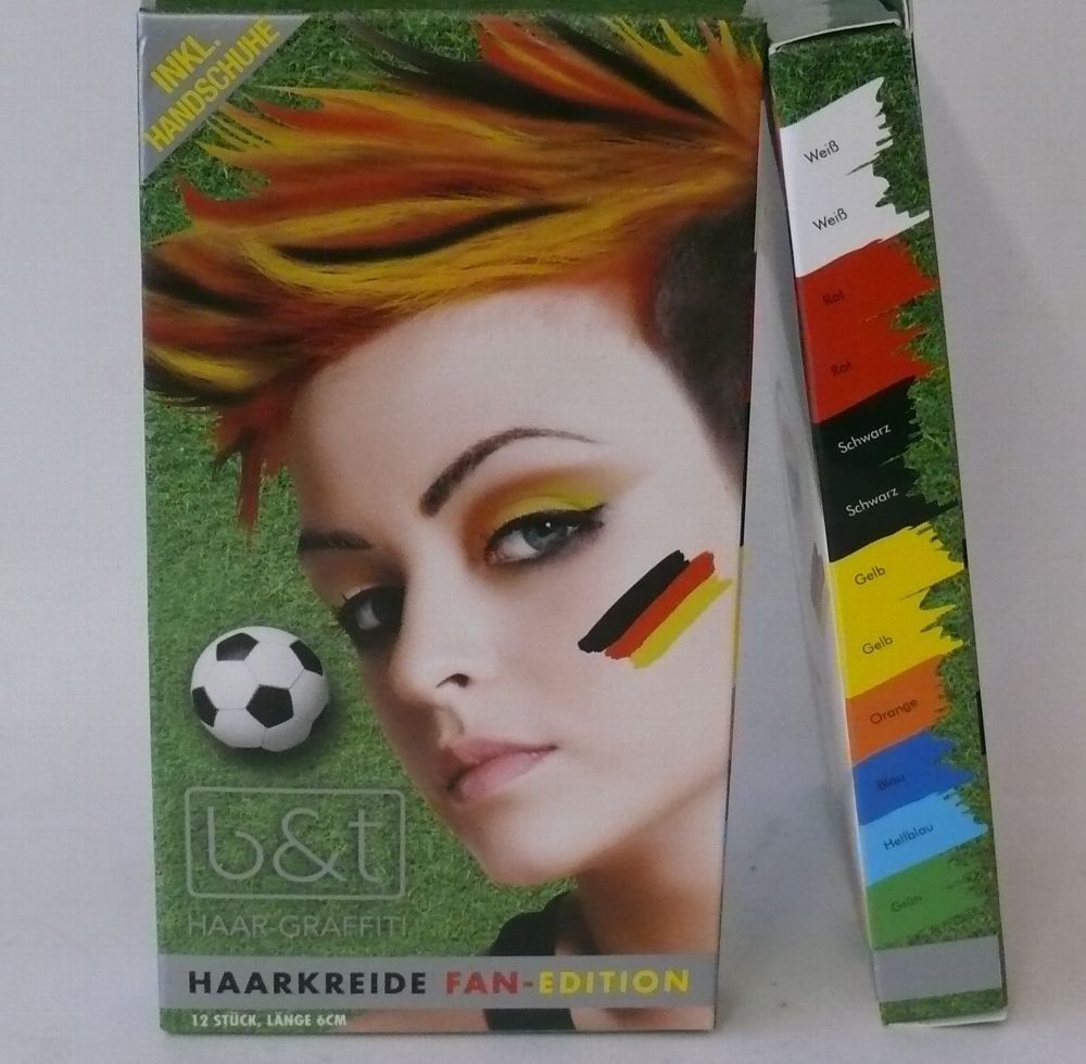 b&t 8 Farbige Haarkreide Fan Edition Haar Graffiti 12 Stück 6cm länge Inkl Handschuh
