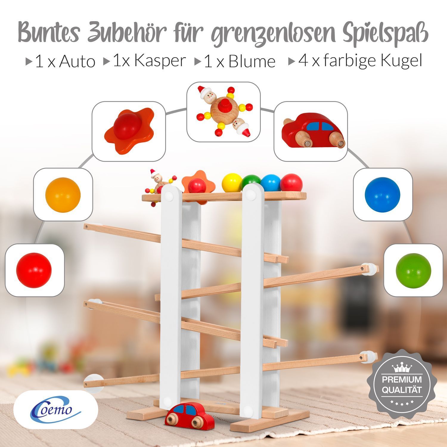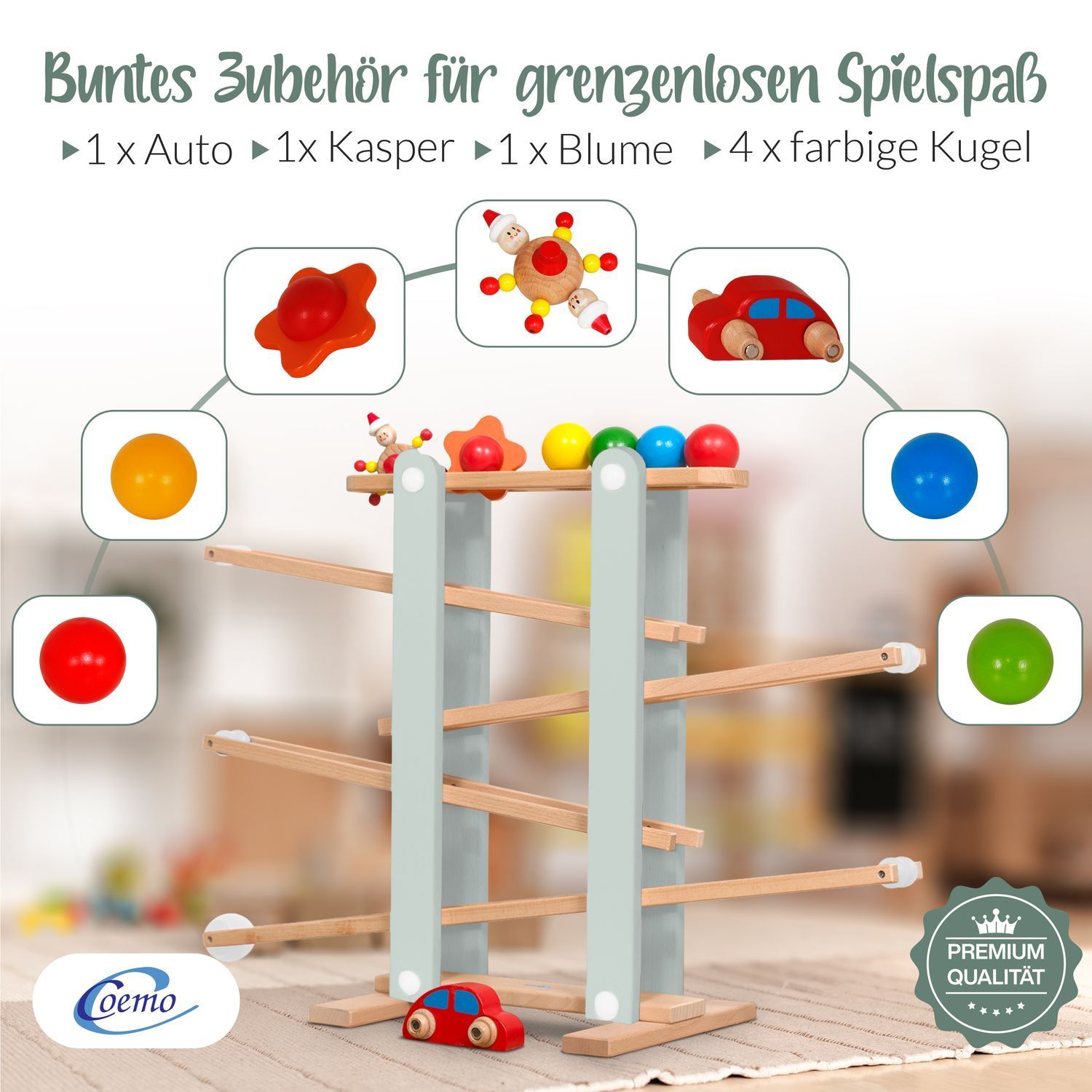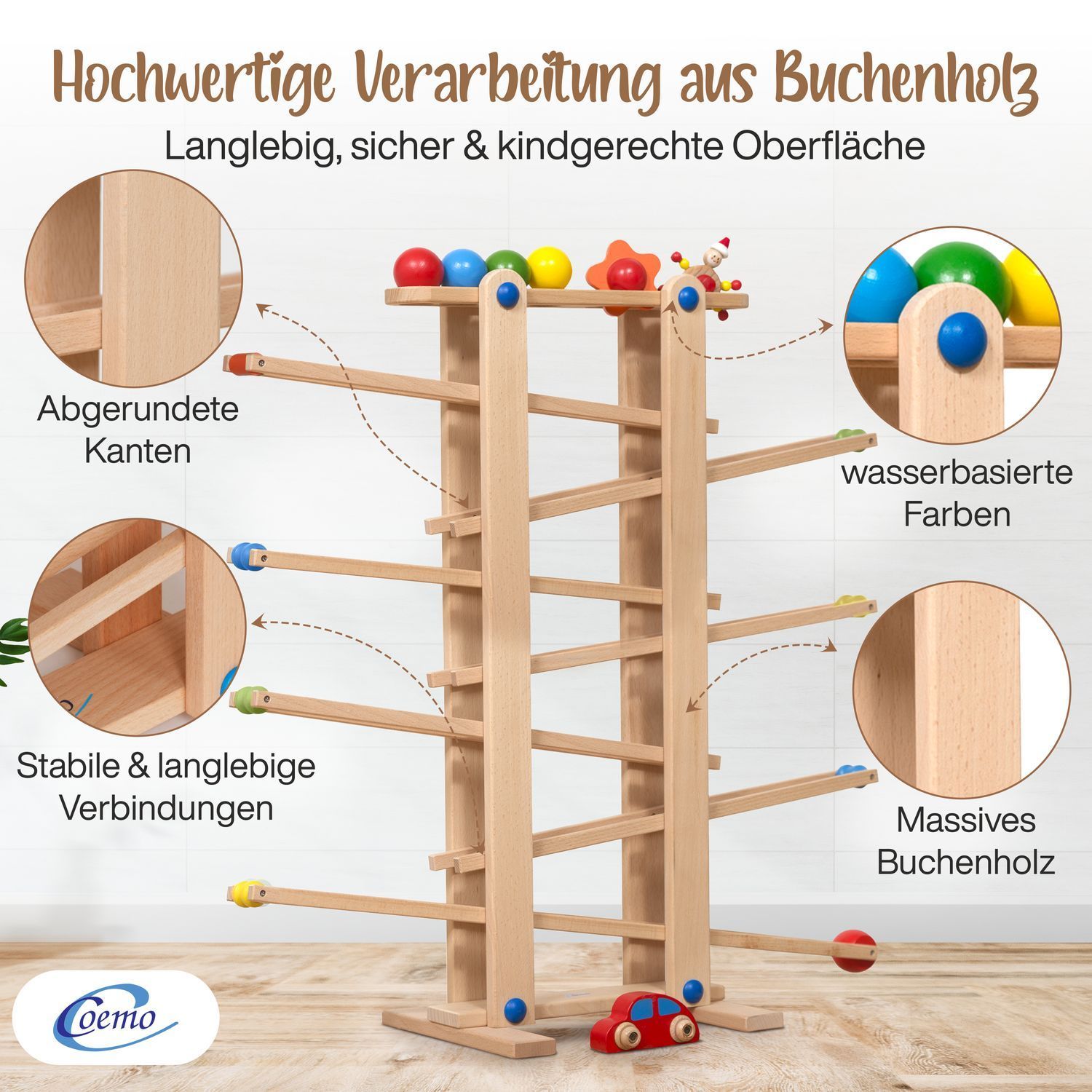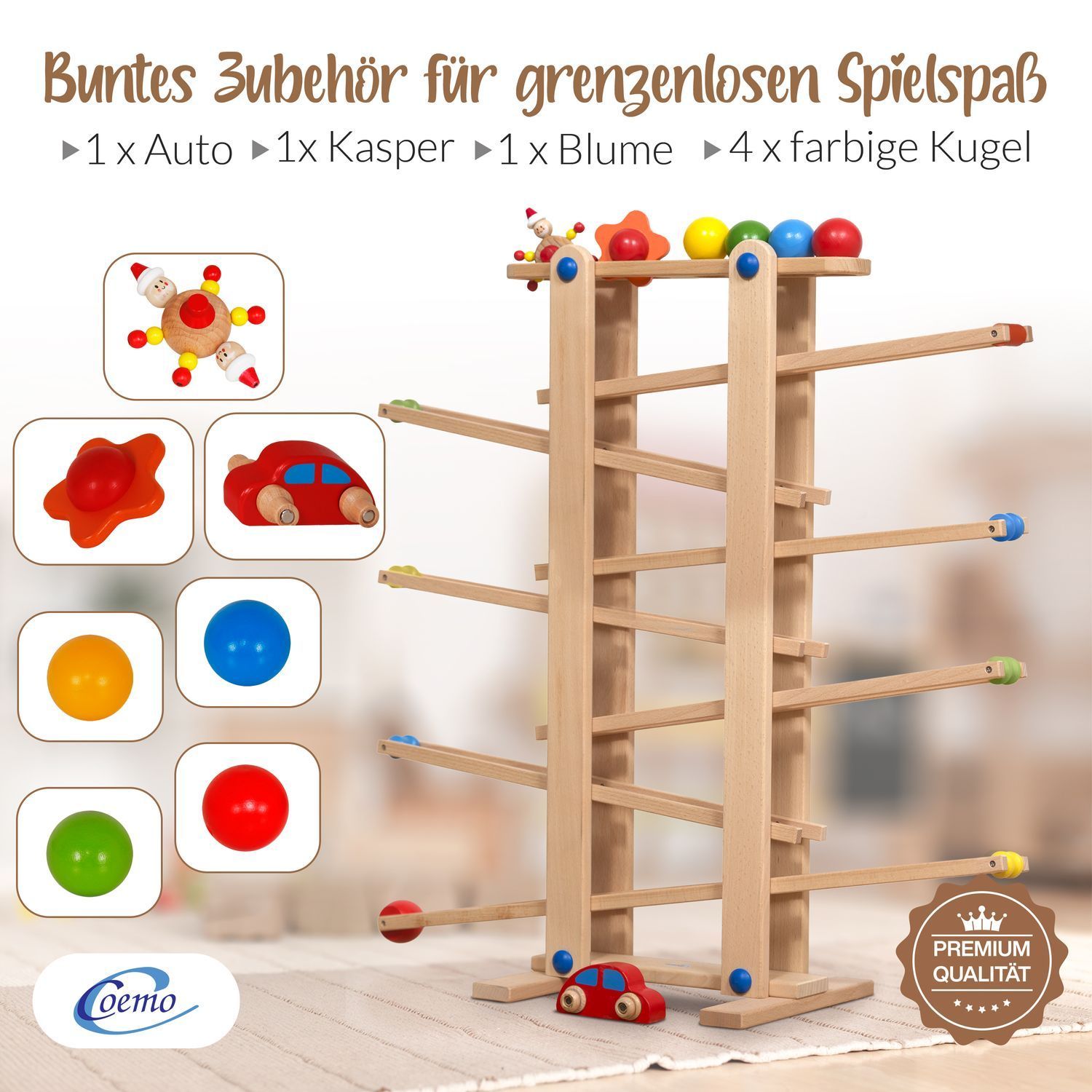 B-Ware Coemo Kugelbahn Holz 7 mobile Teile