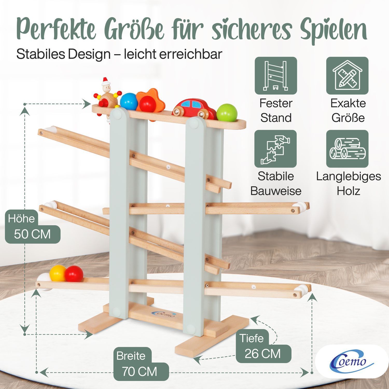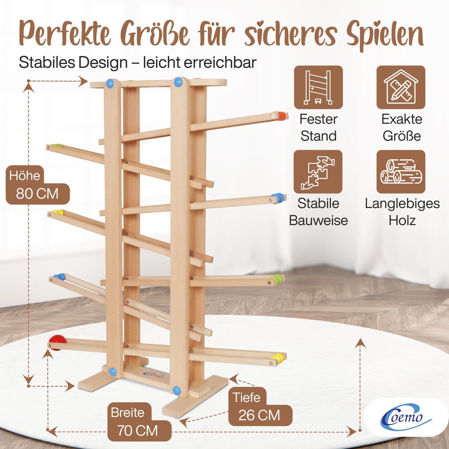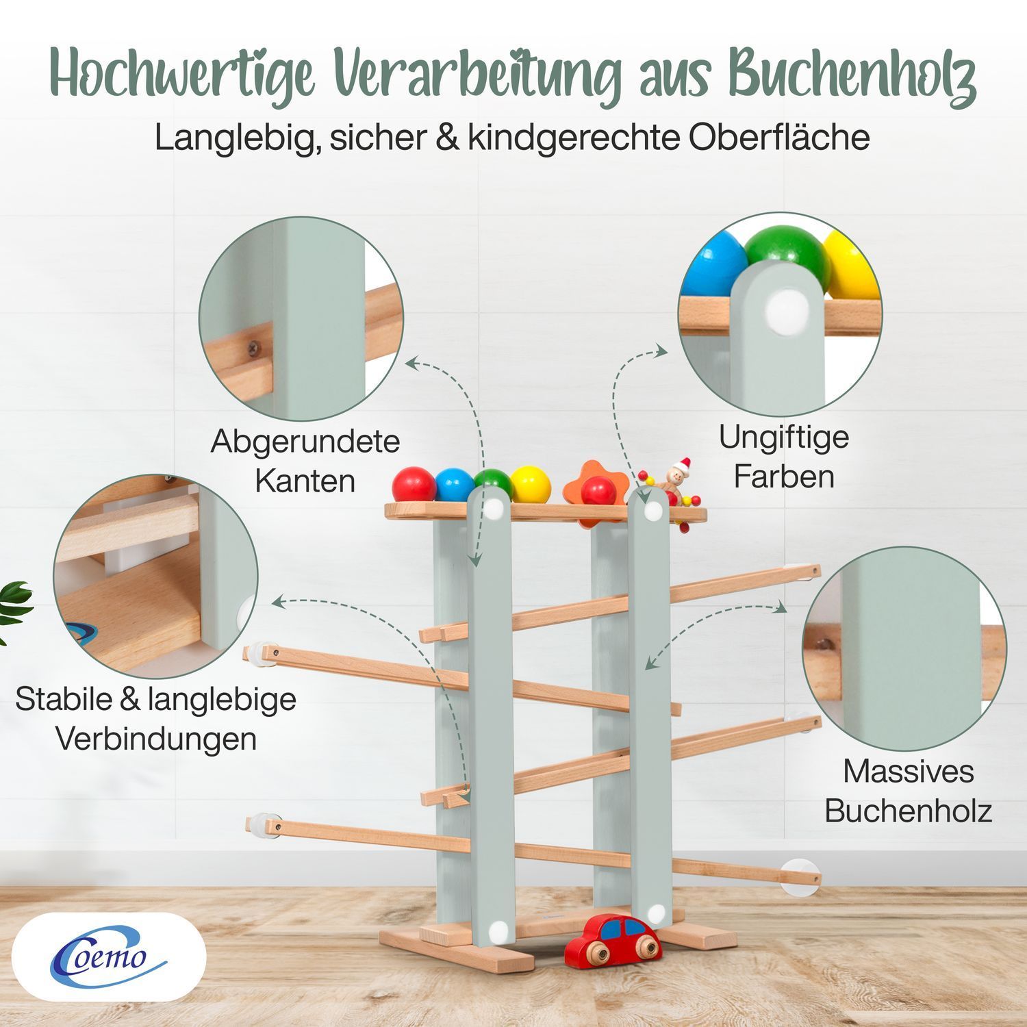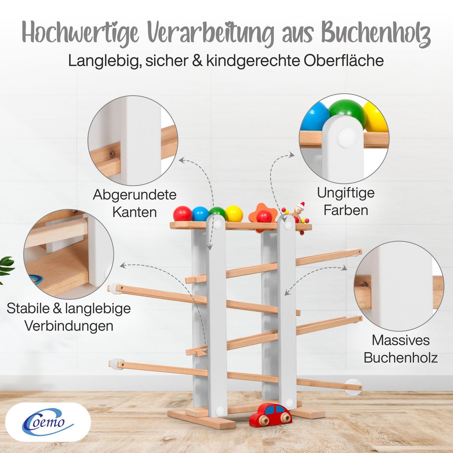 B-Ware Coemo Kugelbahn Holz 7 mobile Teile