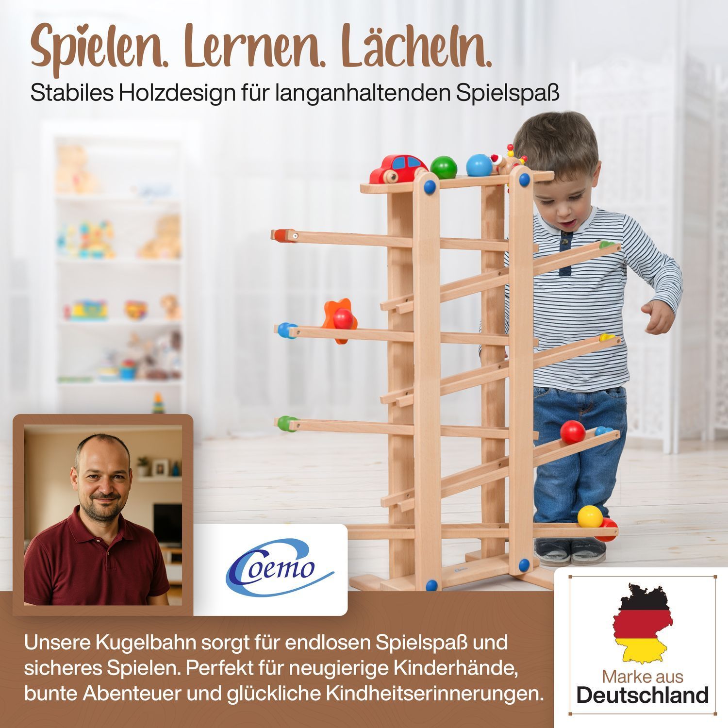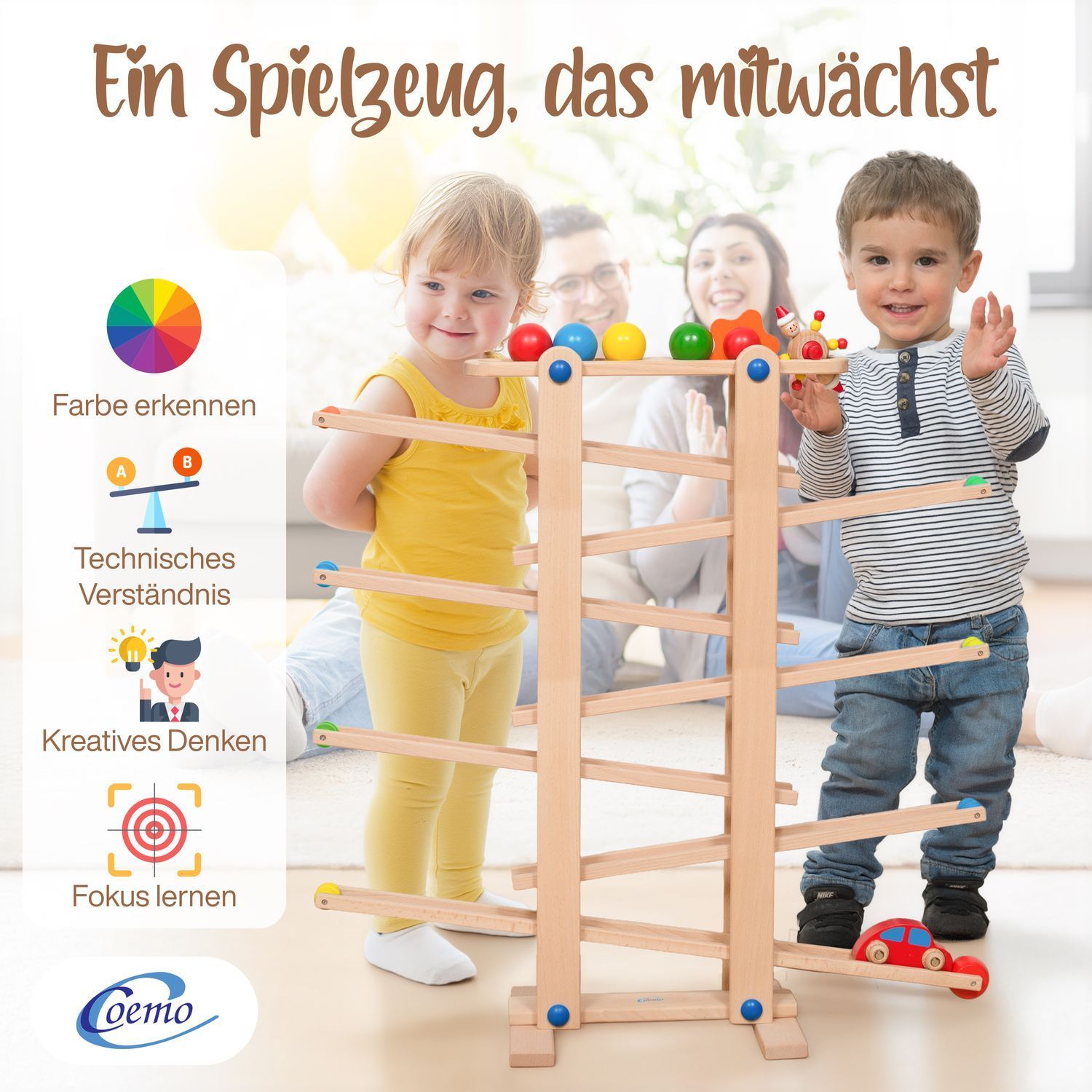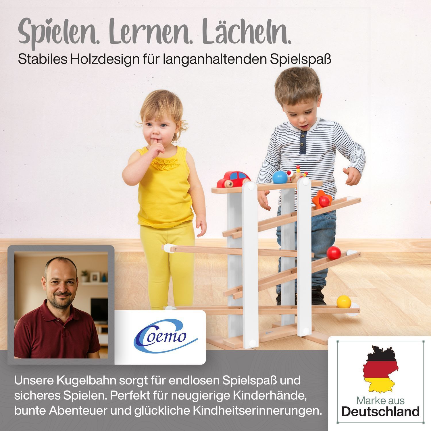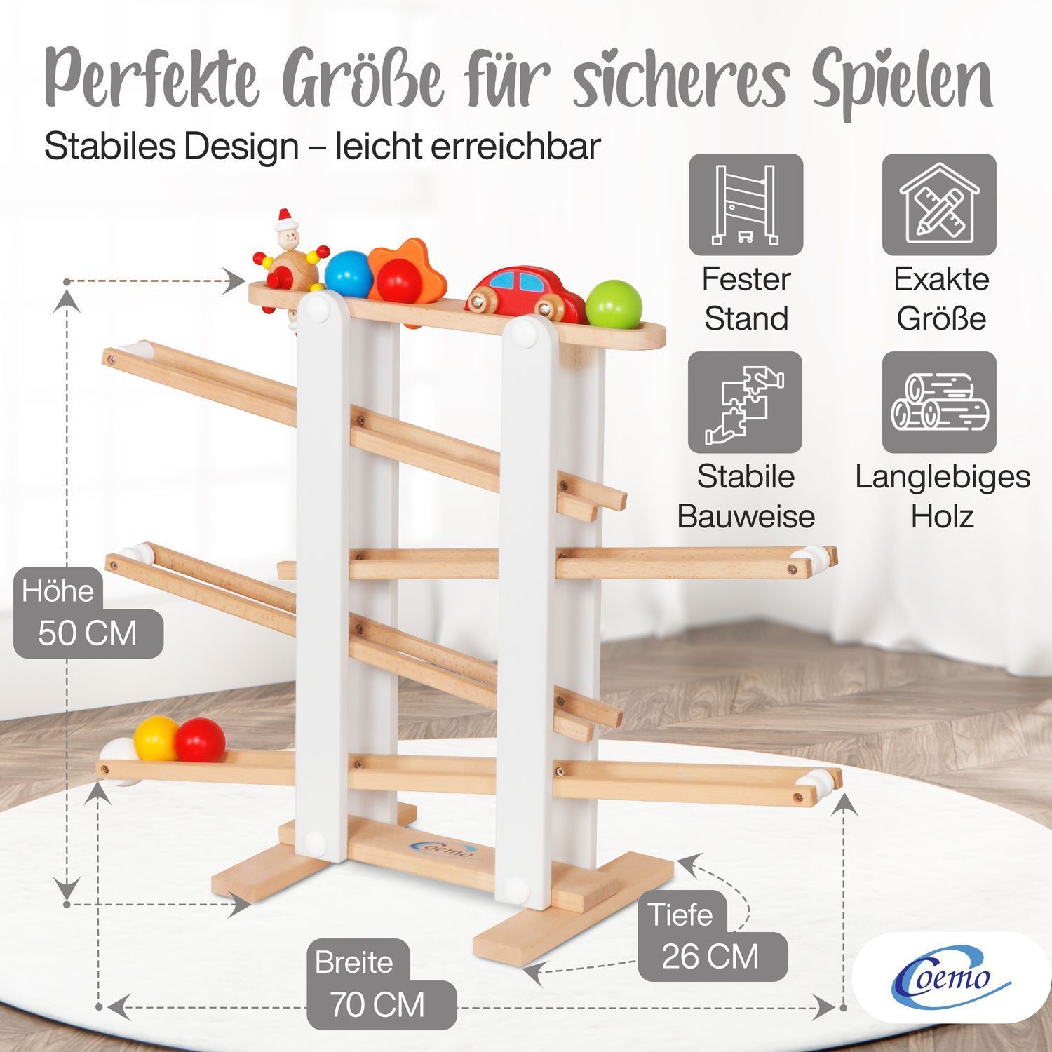 B-Ware Coemo Kugelbahn Holz 7 mobile Teile