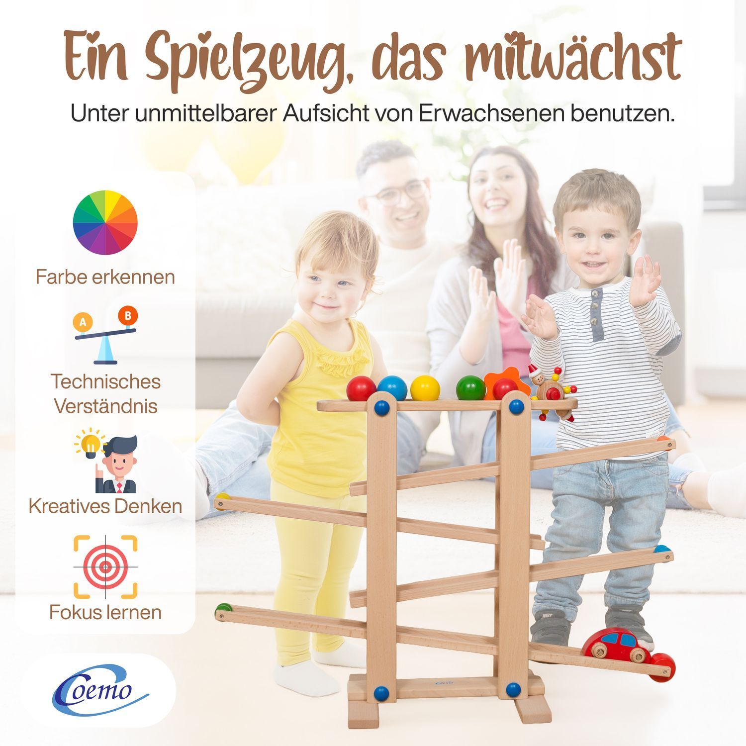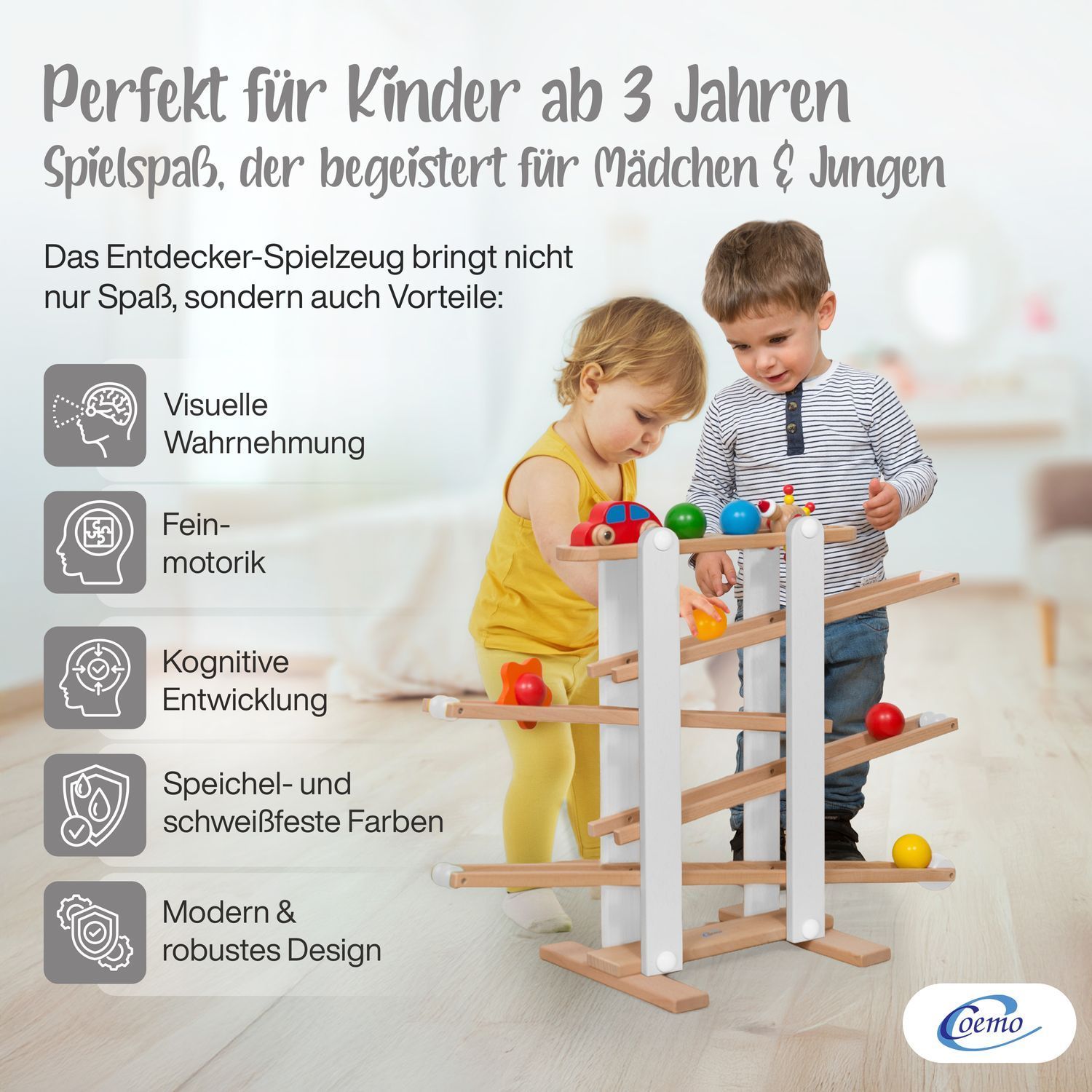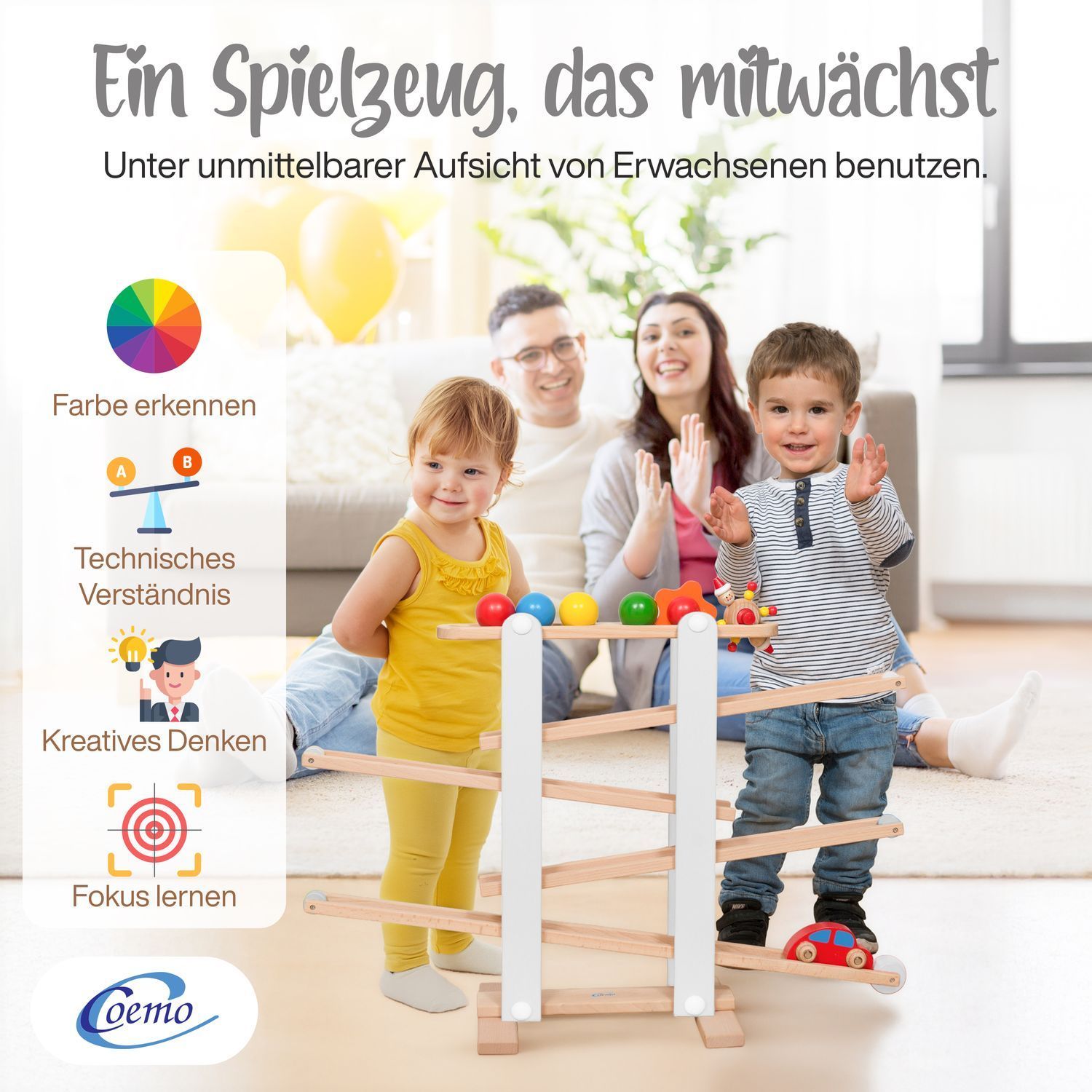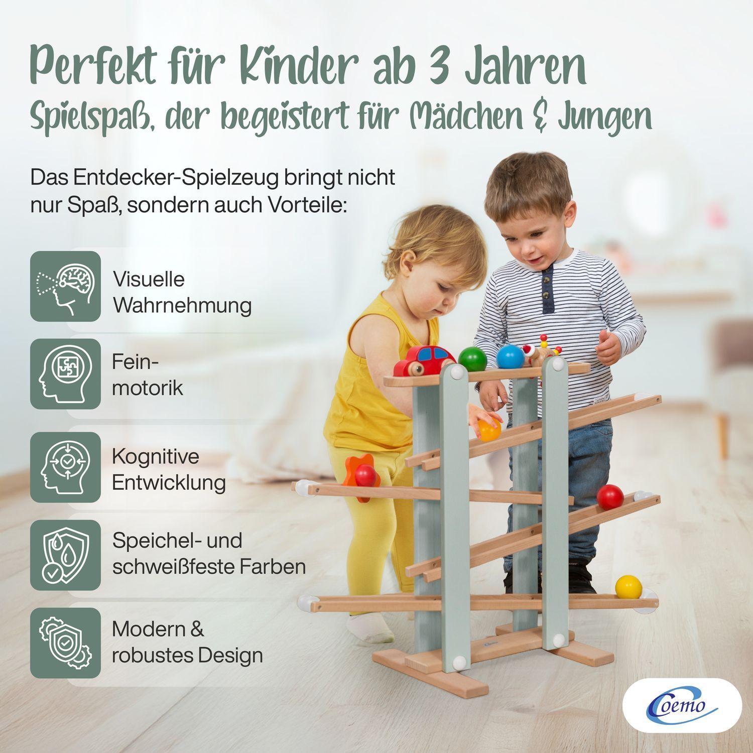 B-Ware Coemo Kugelbahn Holz 7 mobile Teile