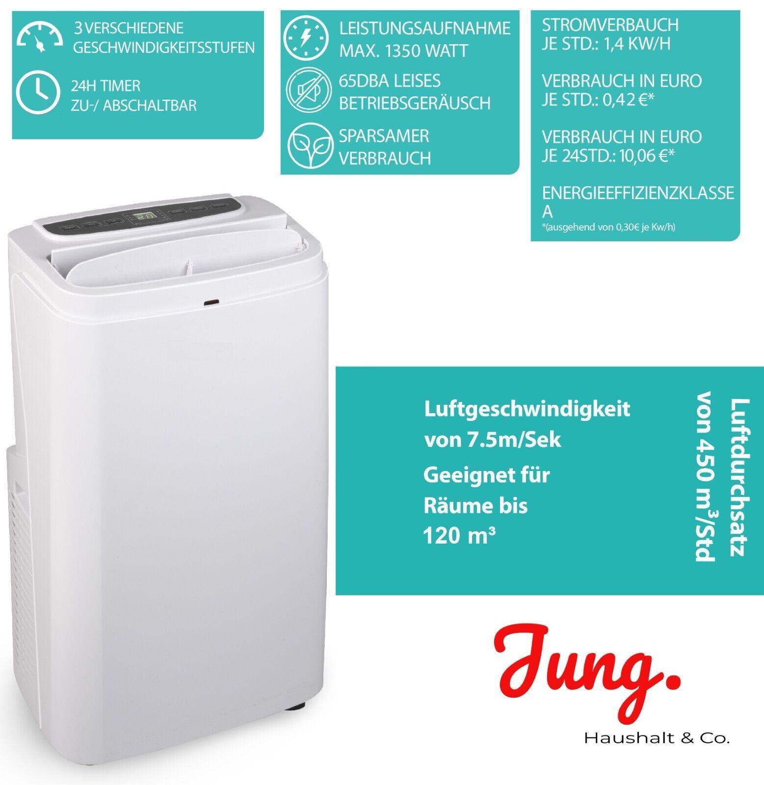 B-Ware JUNG AIR TV06 mobiles Klimagerät 3,6KW 12000BTU Klimaanlage Klima mobil