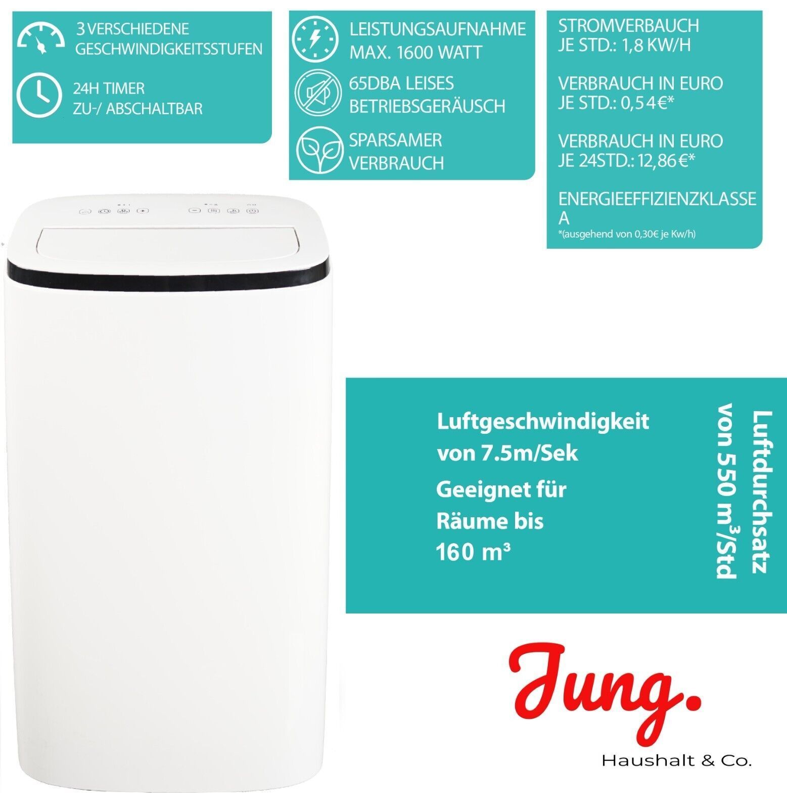 B-Ware JUNG AIR TV08 mobiles Klimagerät 4,7KW 16000BTU Klimaanlage Klima mobil