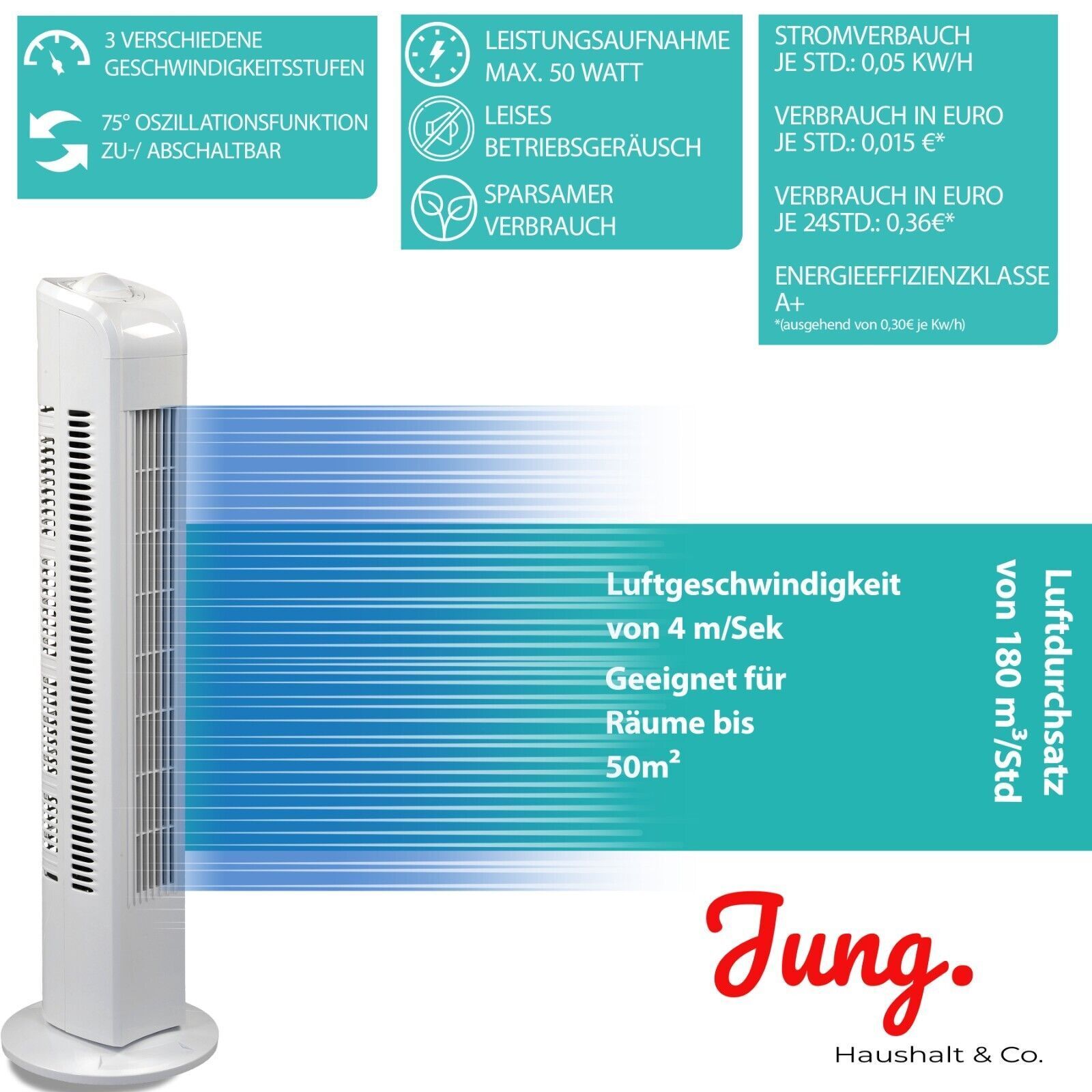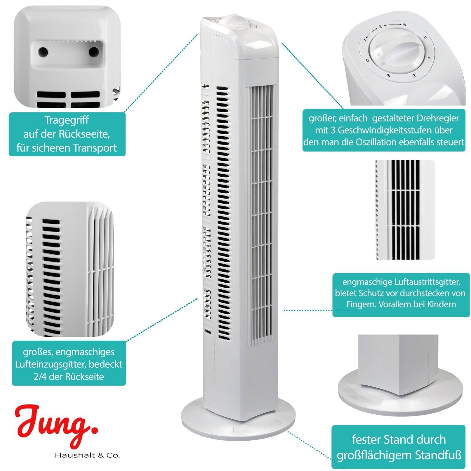 B-Ware JUNG TVE21 Turmventilator Ventilator Säulenventilator 76cm Oszillierend