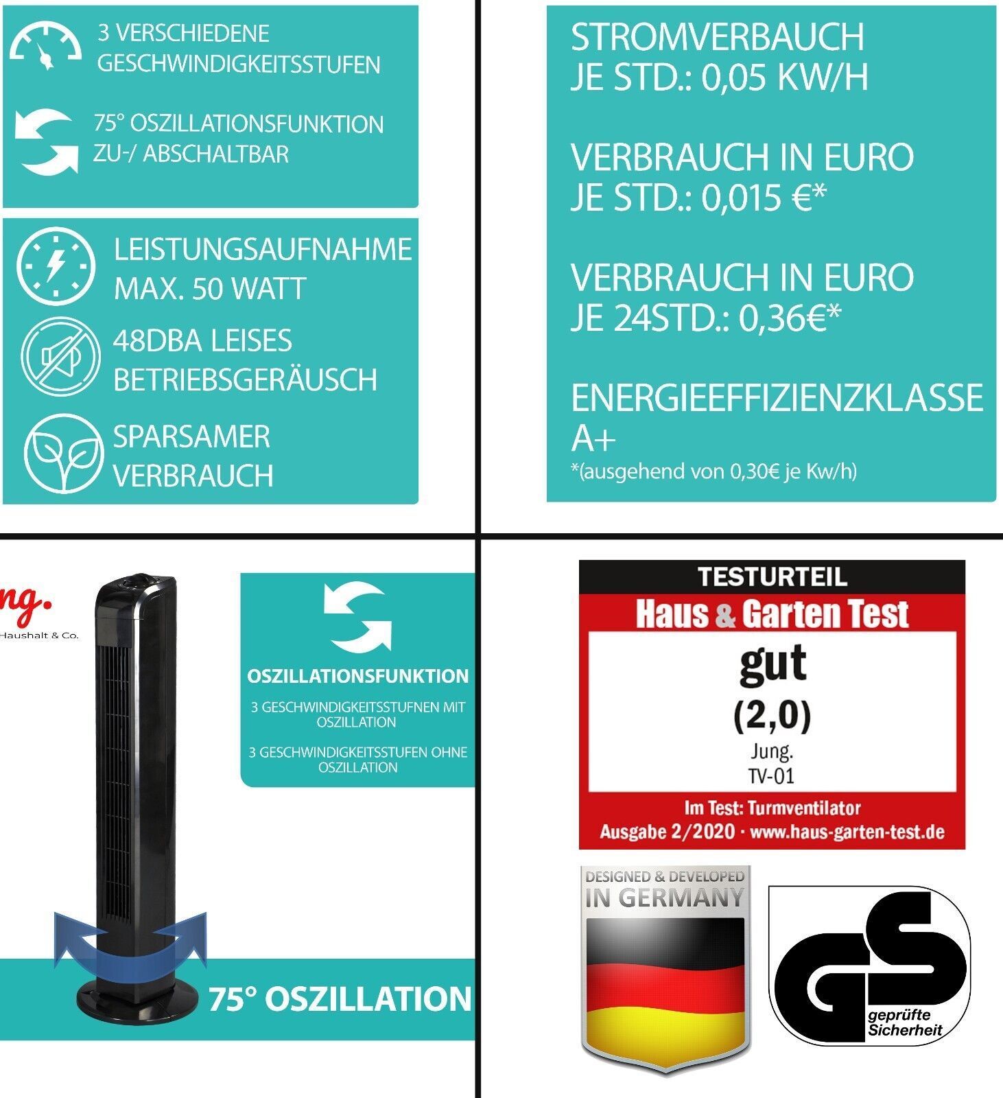 B-Ware JUNG TVE22 Turmventilator Ventilator Säulenventilator 76cm Oszillierend