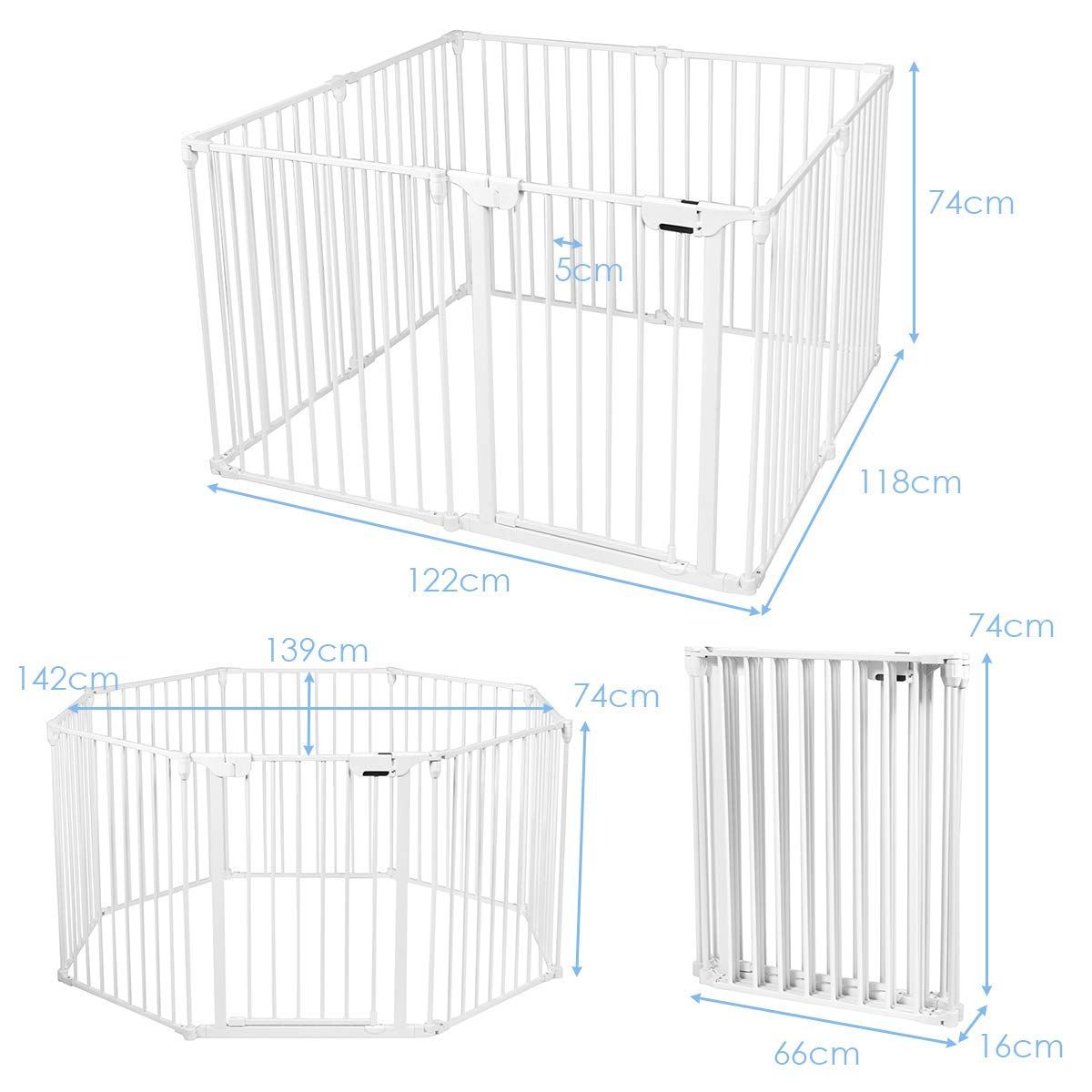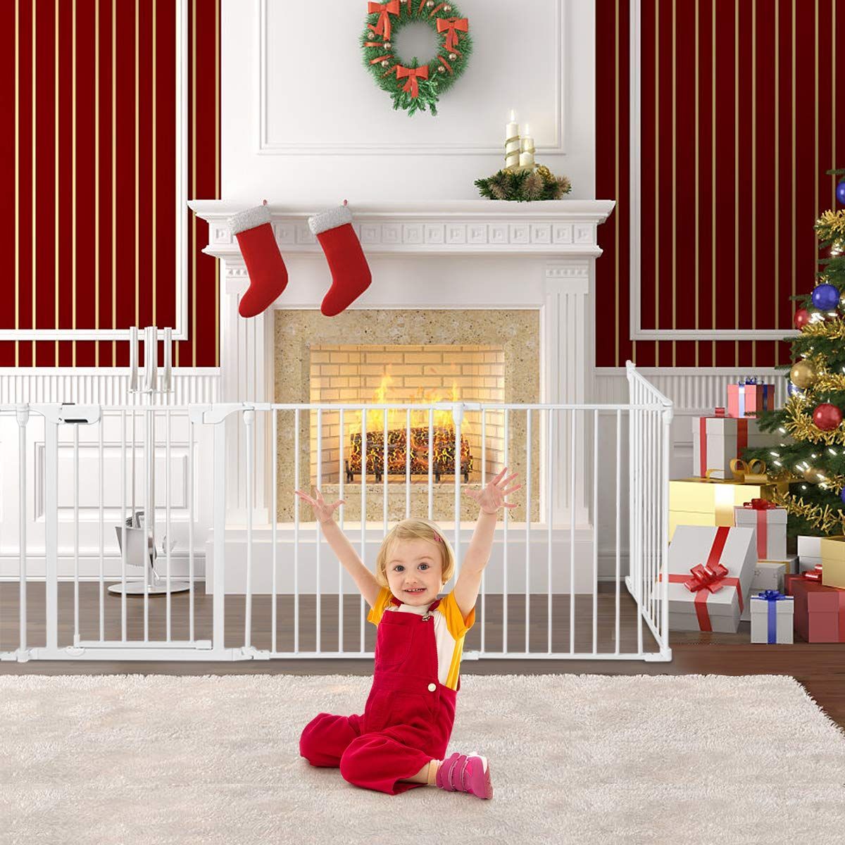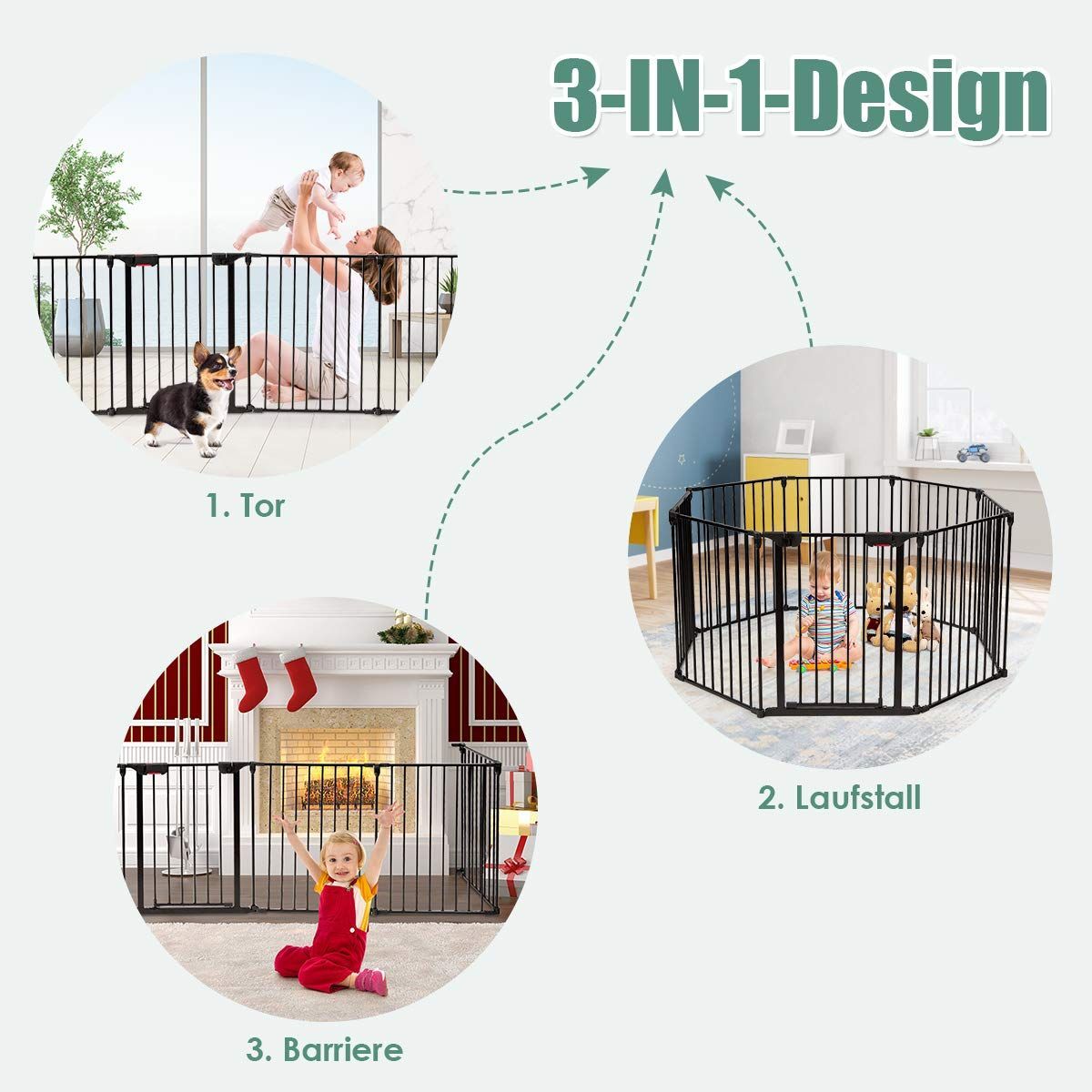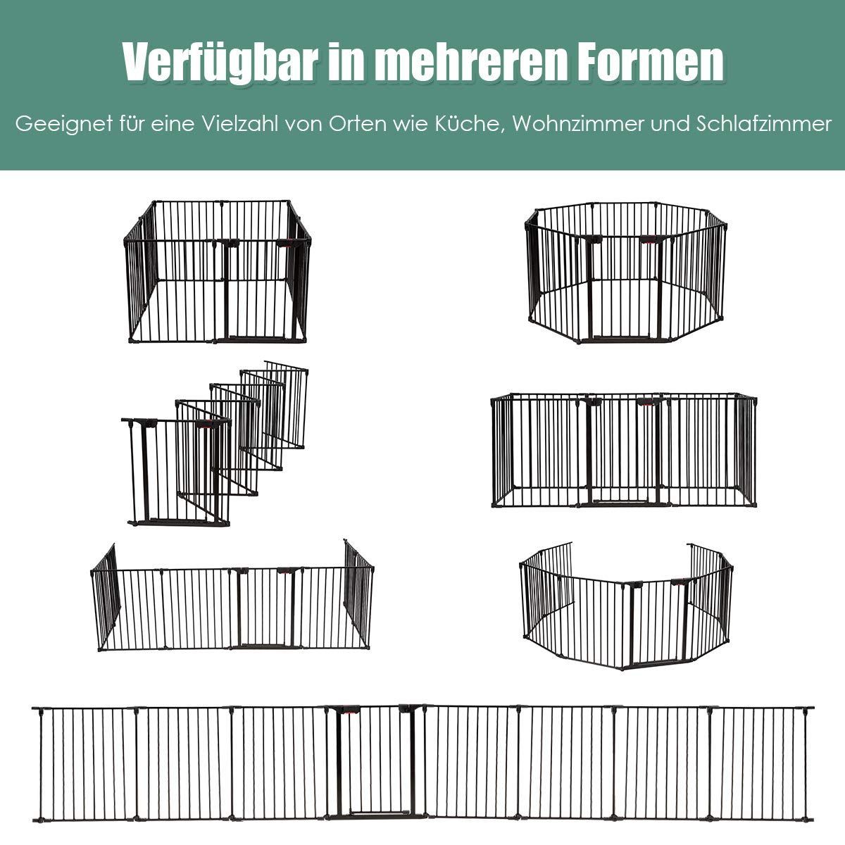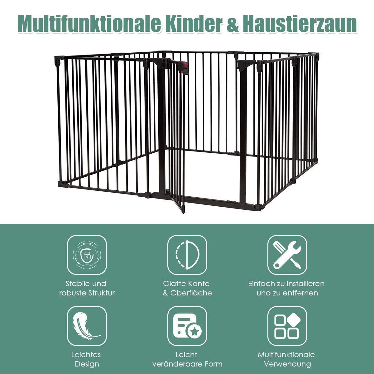 Baby Kaminschutzgitter klappbar 8 Elementen, 480x74 cm, Laufgitter mit Sicherheitstür