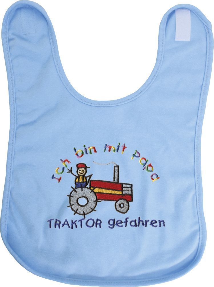 Baby-Lätzchen mit Einstickung - Ich bin mit Papa Traktor ...- 08467 hellblau