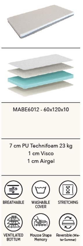 Baby-Matratze Karia 120x60x10 PU-Schaum+Viscoschaum Beige