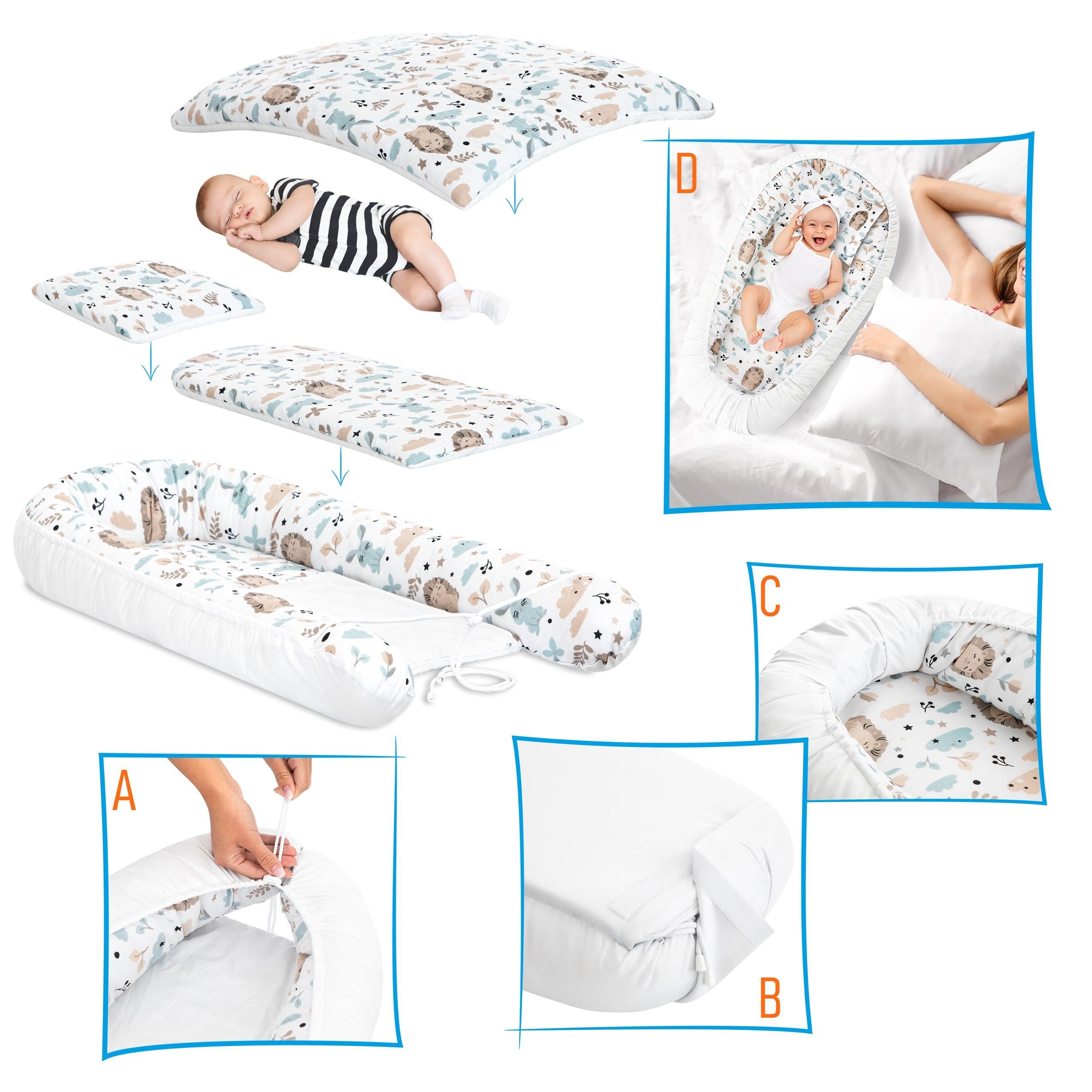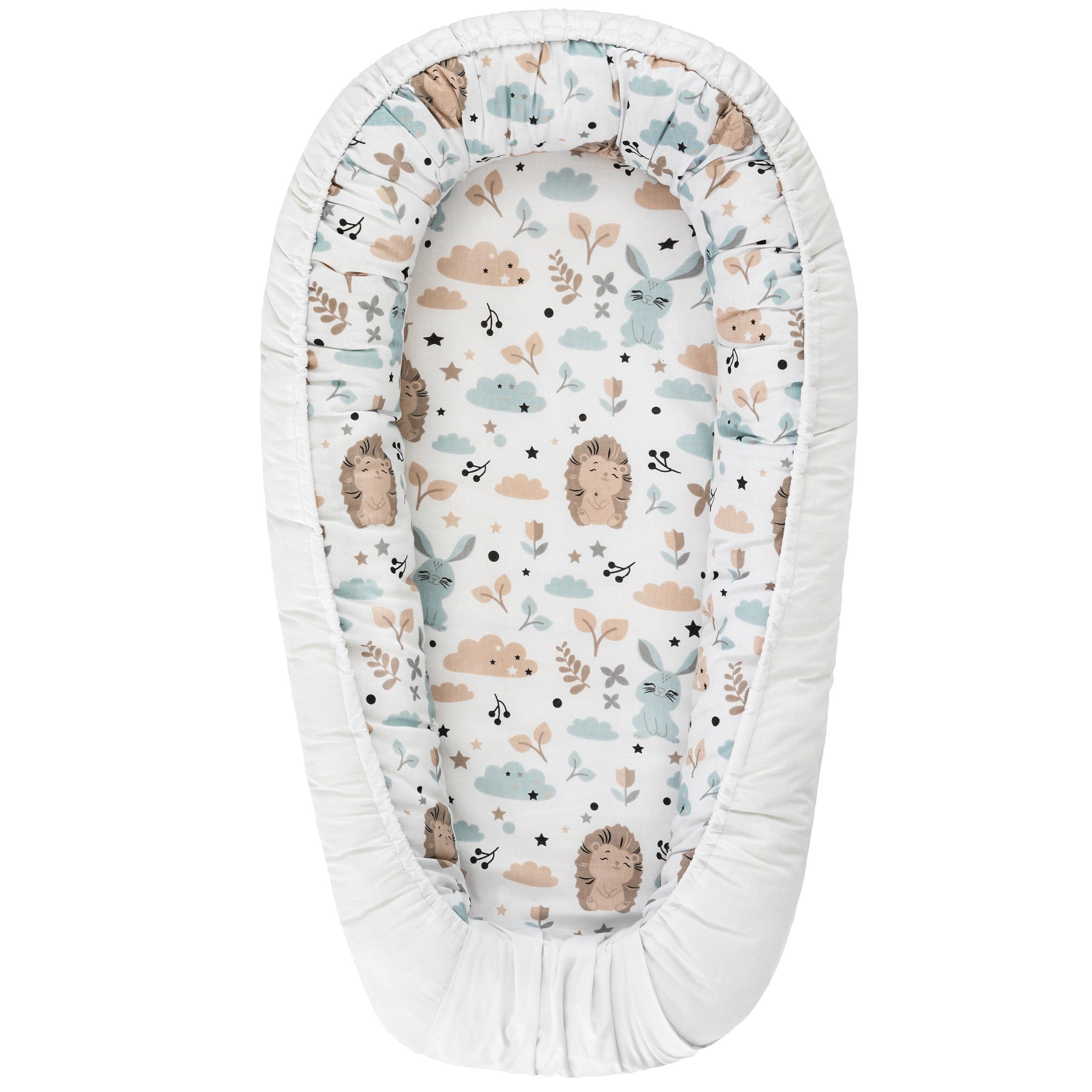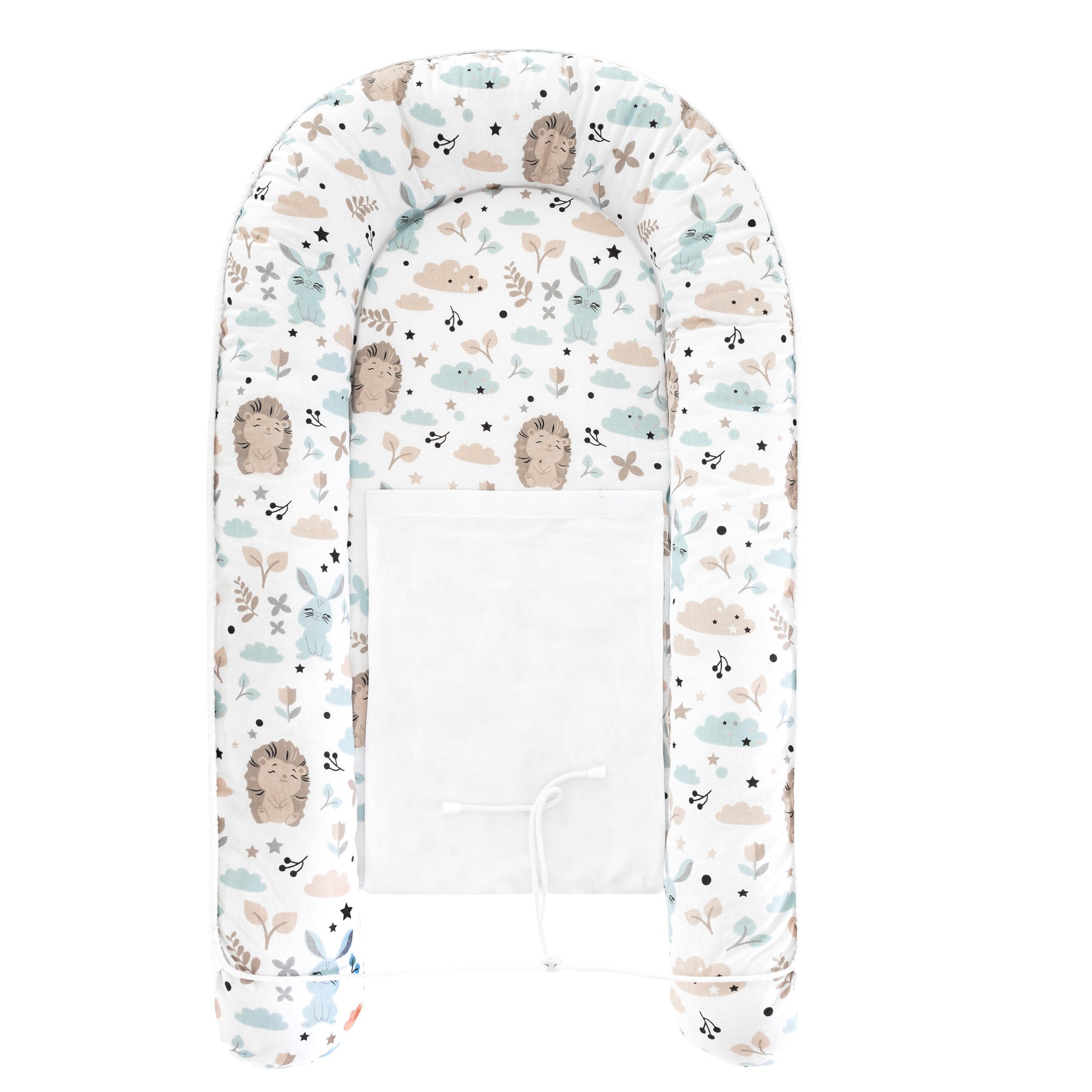Baby Nestchen Kokon für Babys Neugeborene 90x50 cm weiß mit Igelchen