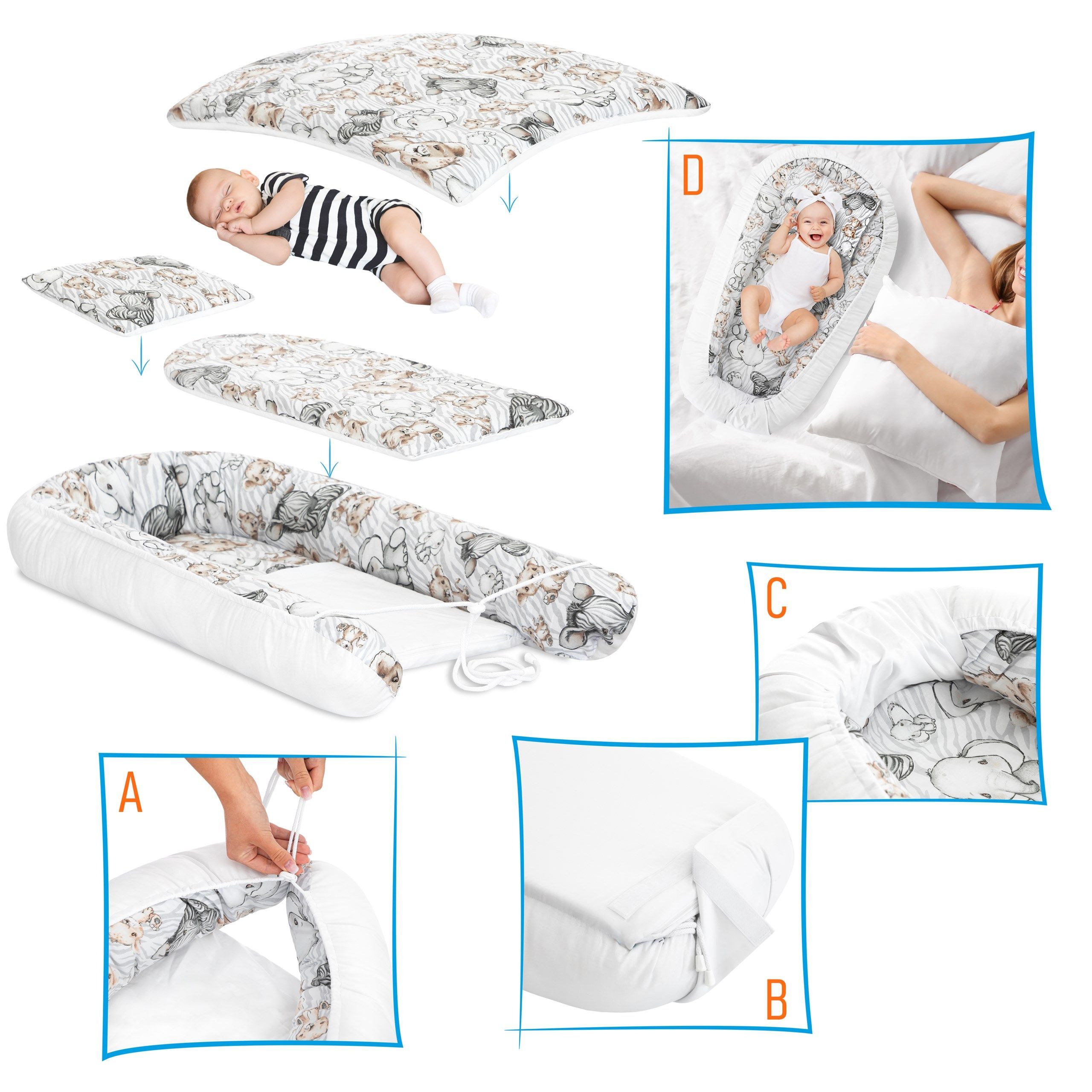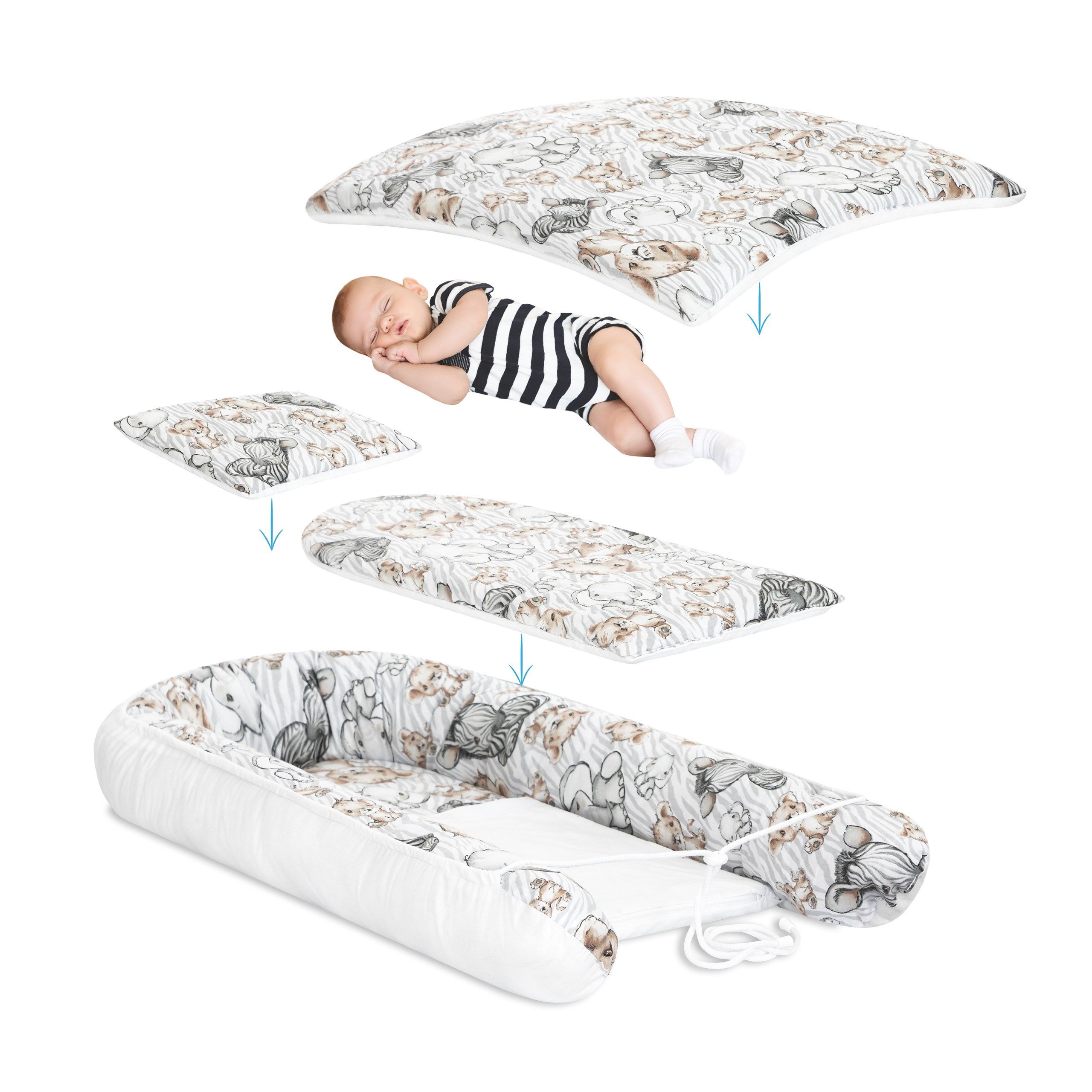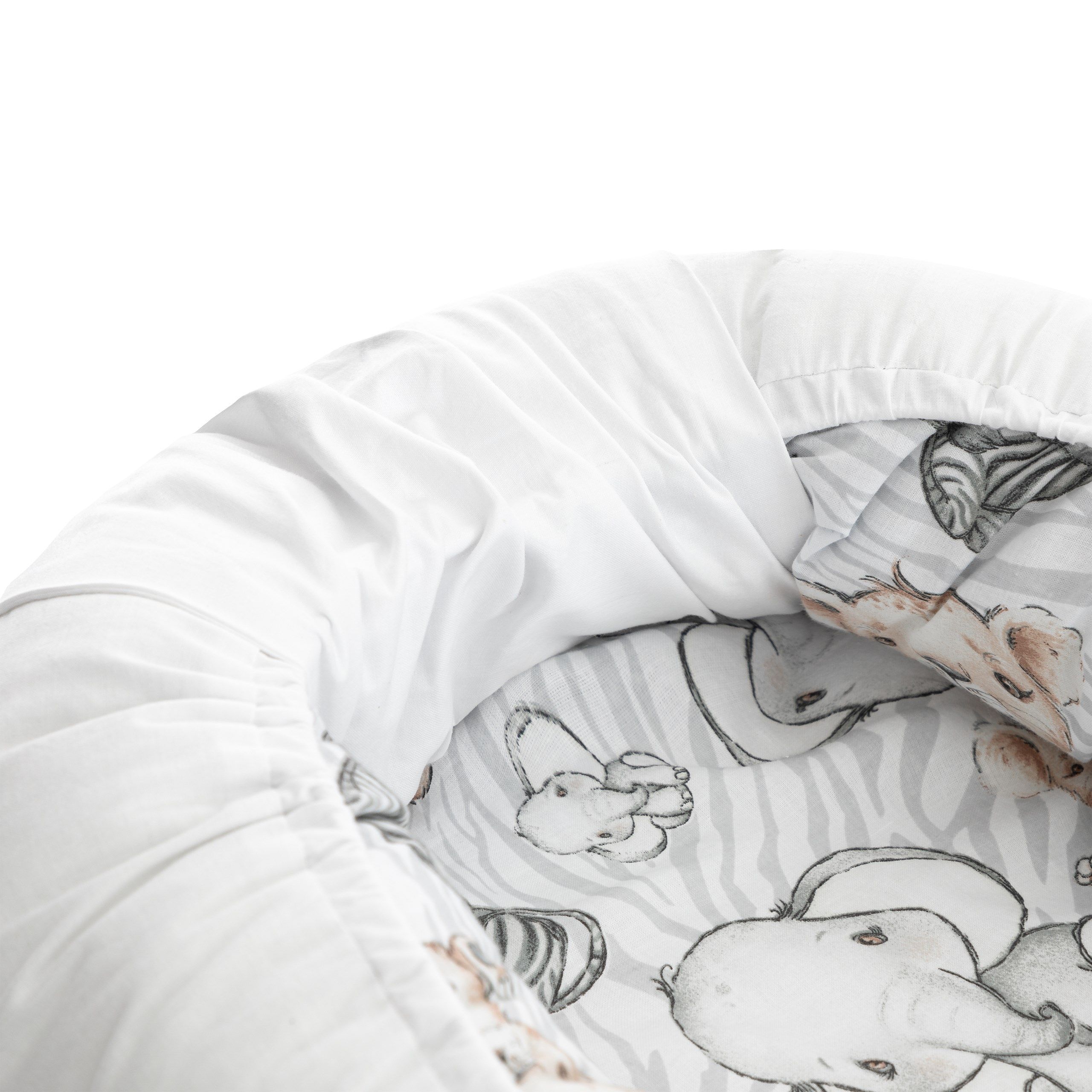 Baby Nestchen Kokon für Babys Neugeborene 90x50 cm weiß mit Zebra und Löwe