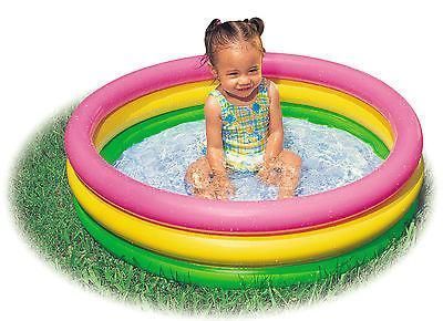 INTEX Baby Pool bunt Kinder Planschbecken Ø 86cm aufblasbar 3 Ringe Schwimmbecken NEU