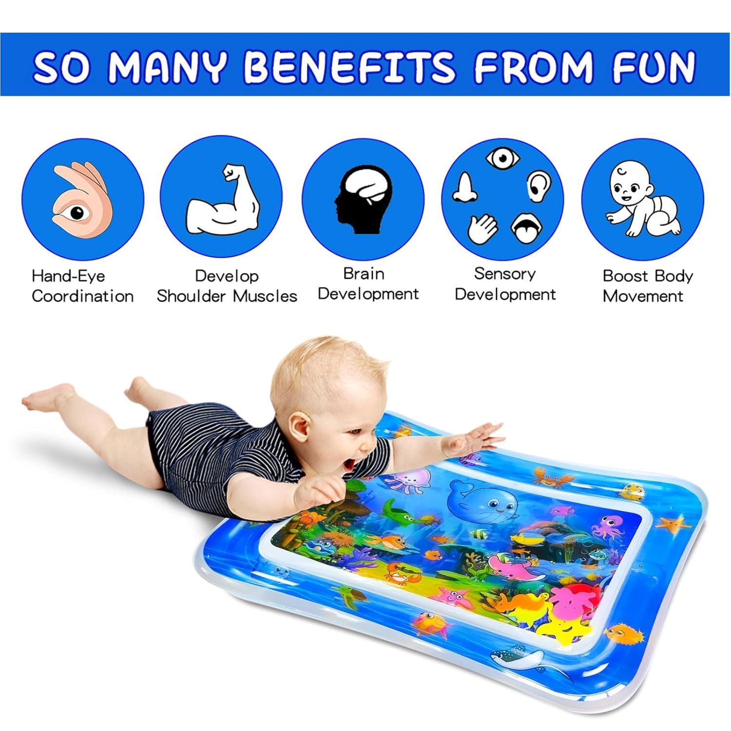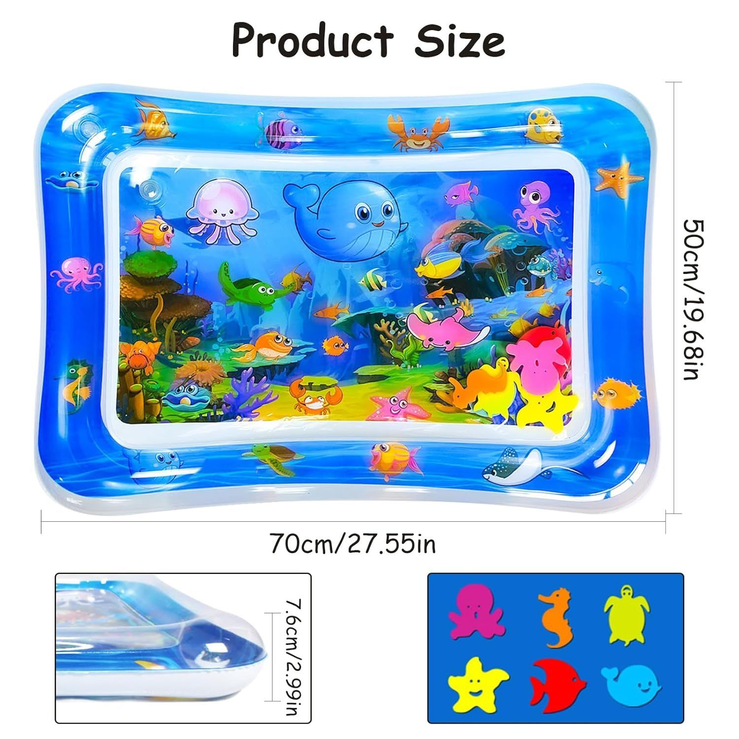 Leckfrei, geruchlos und langlebig für sicheres Spielen. Regen die Fantasie an und unterhalten das Baby stundenlang mit schwimmenden Elementen. Unterstützt Hand-Auge-Koordination und motorische Fähigkeiten während der Bauchzeit. Schnell aufgeblasen und nach dem Spielen platzsparend zusammengefaltet. Ideal zur Geburt, Baby Shower oder zum 1. Geburtstag.