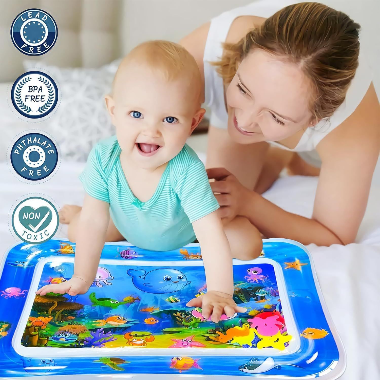 Baby Wasserspielmatte - Aufblasbare Spielmatte mit bunten Meerestieren - BPA-frei