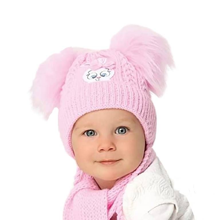 Baby Winter Mütze Mädchen Strick Bommel Babymütze Schal Set Baumwolle gefüttert