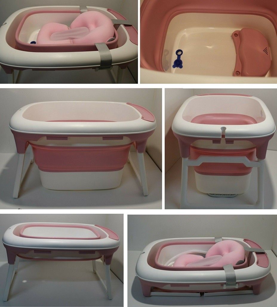 Babybadewanne zusammenklappbar Sichere faltbare 2 in1 Badewanne NEU, unbenutzt, unbeschädigt. B: ca. 77 cm. Tief: ca. 52 cm. Höhe: ausgeklappt ca. 52 cm, zusammengeklappt ca. 20 cm SICHERE MATERIALIEN – Hergestellt aus lebensmittelechtem Original 5 Umweltschutz-PP, BPA-frei. HOHE FESTIGKEIT UND RUTSCHFEST SMART TEMPERATURE - Surround-Lock-Temperatur-Design und dreidimensionalen Eimer Körper ca. 5,2 kg Rosa-Weiss