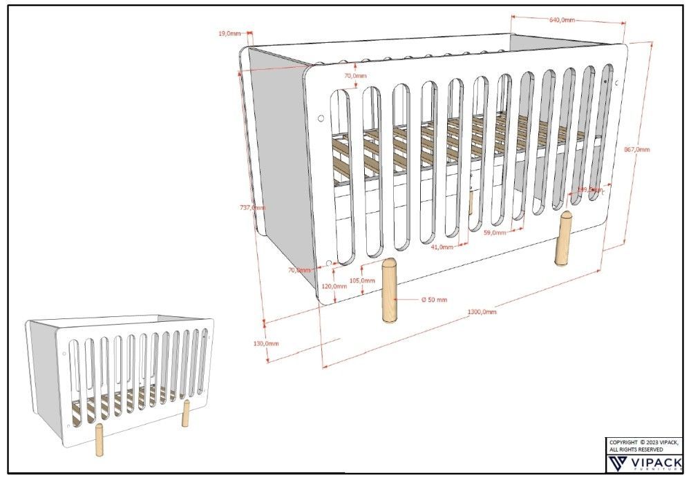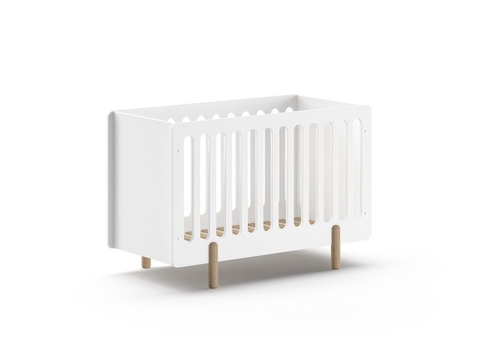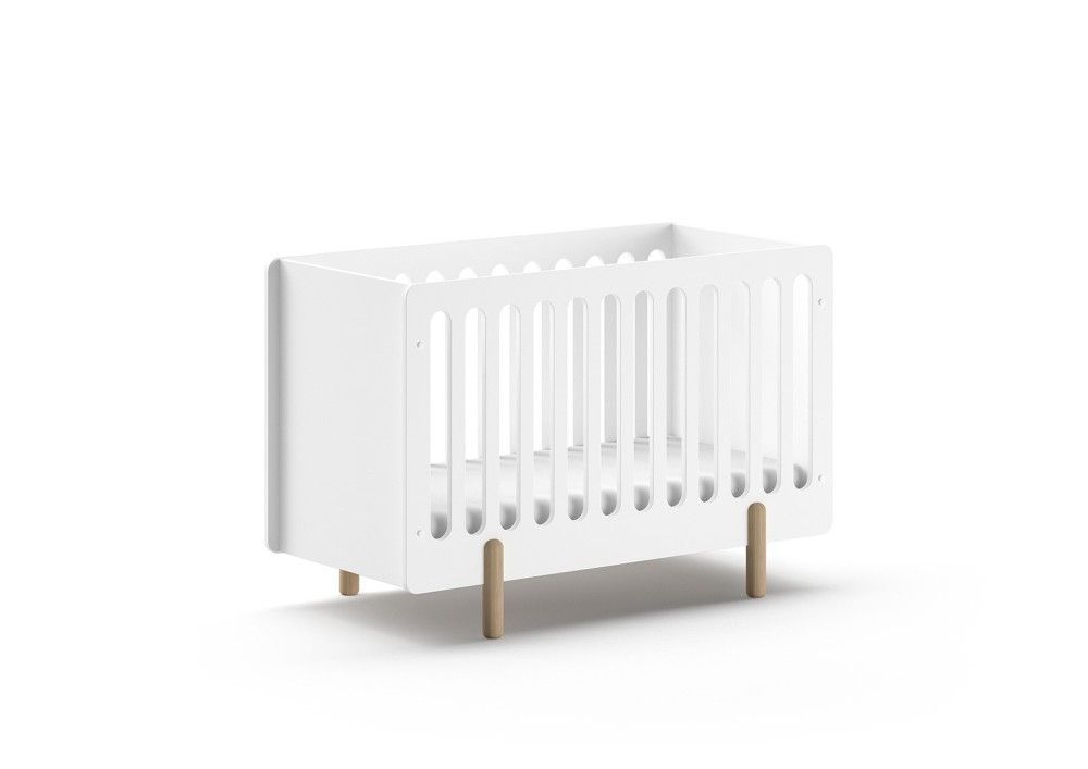 Babybett 60x120 höhenverstellbar Gitterbett Kinderbett ovale Sprossen Füße Weiß