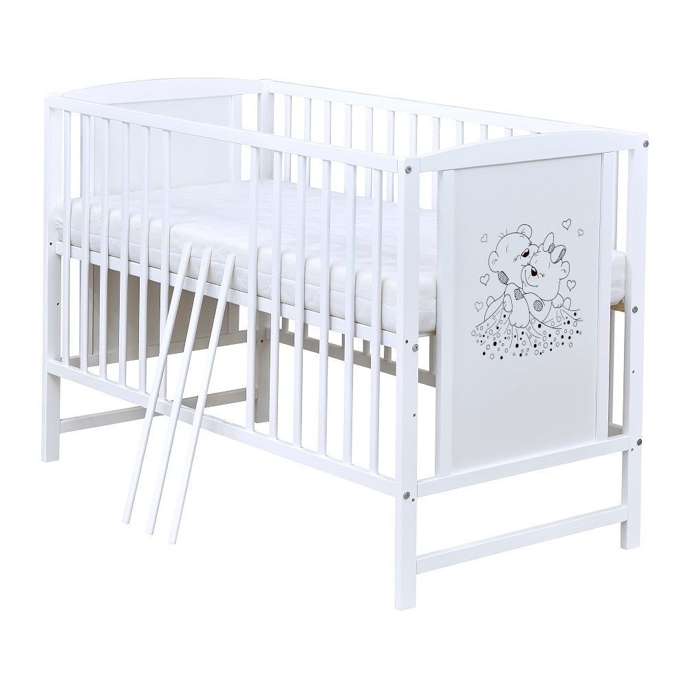 Babybett Gitterbett Kinderbett Weiß 120x60 Bärchen Matratze