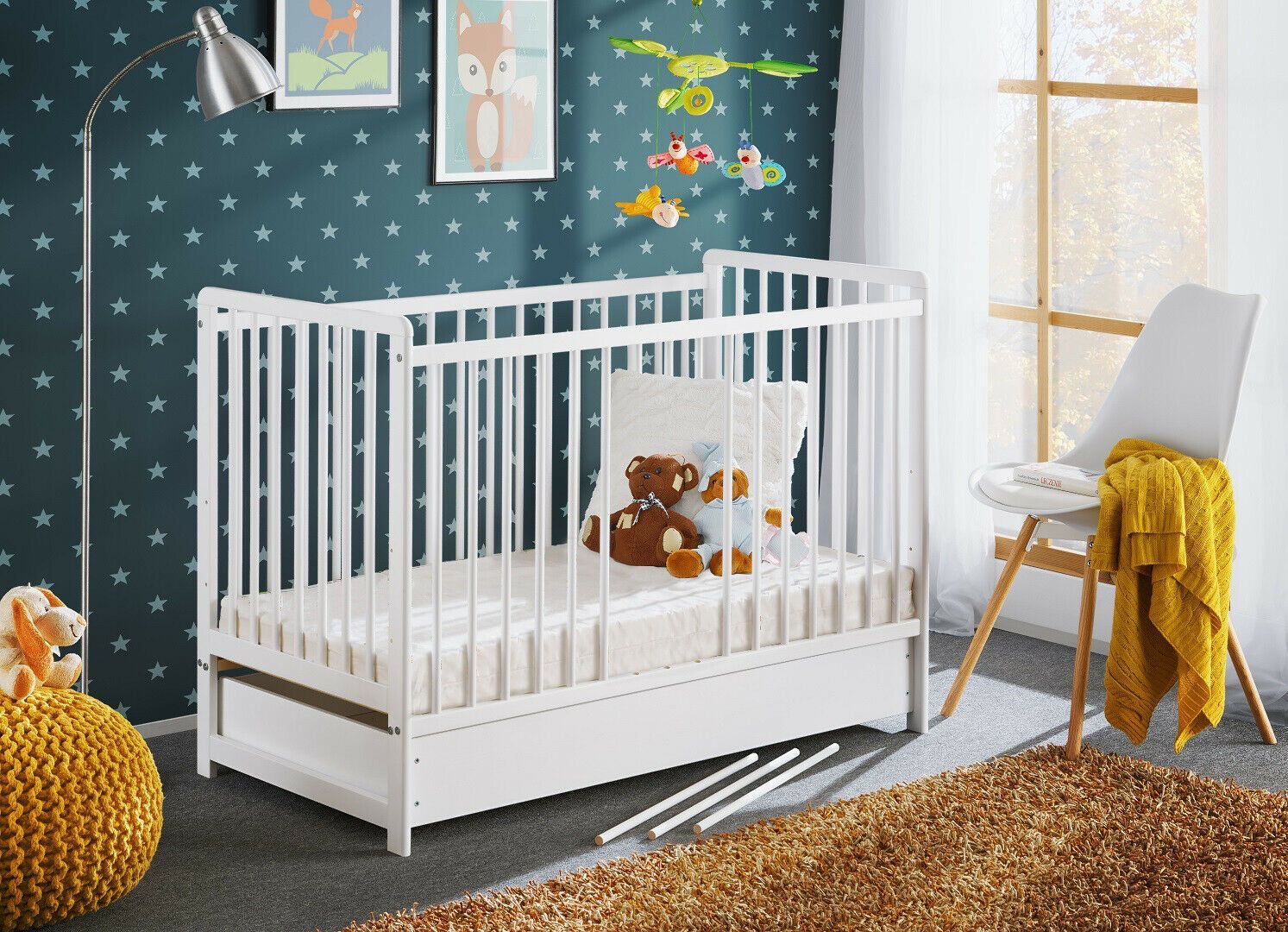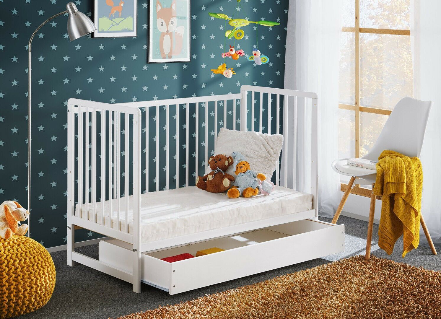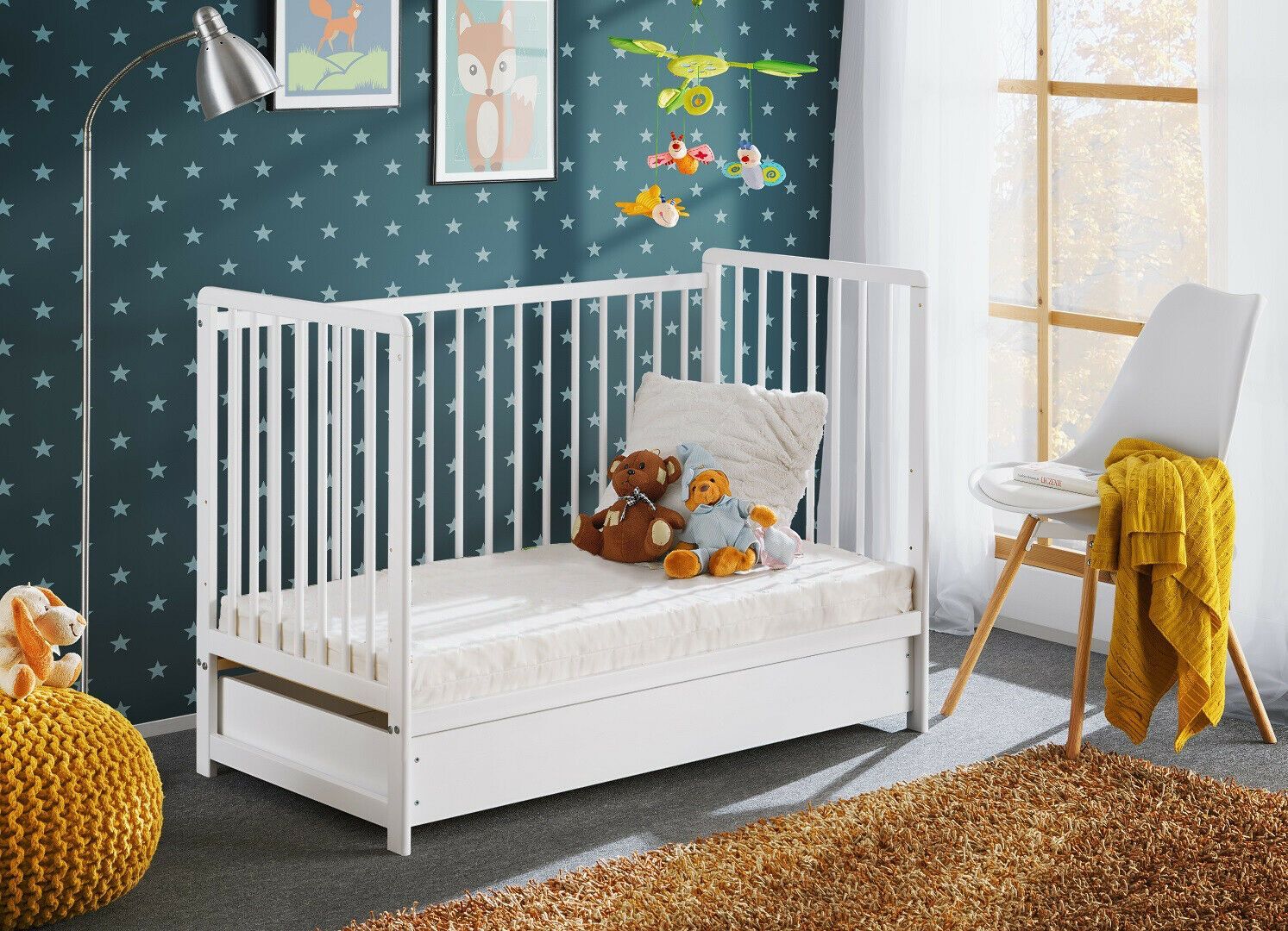 Babybett Kinderbett Gitterbett Beistellbett + Matratze Schublade CYPI 120x60
