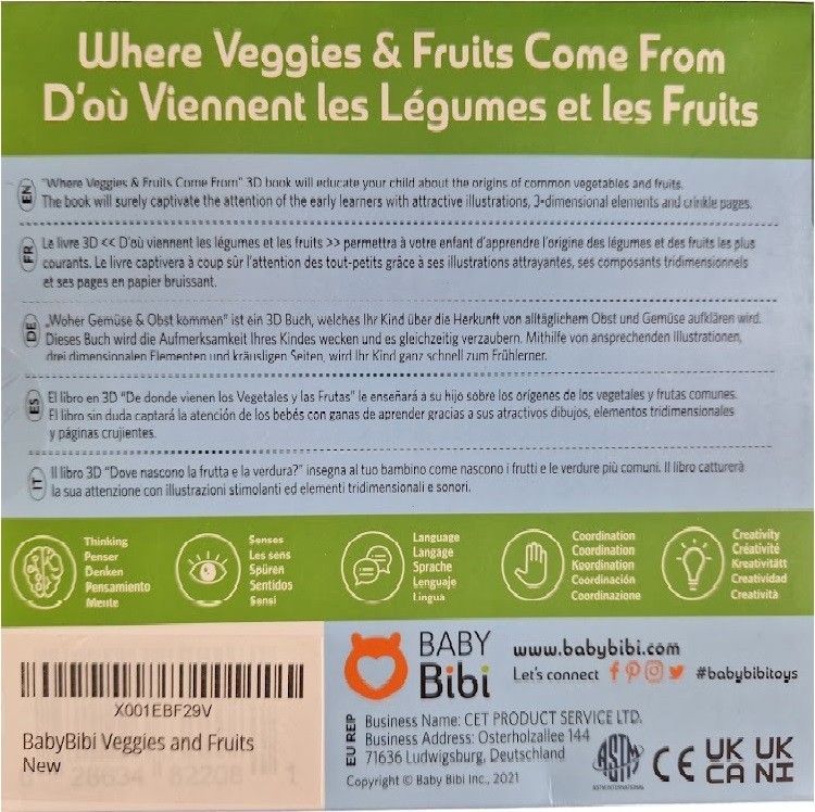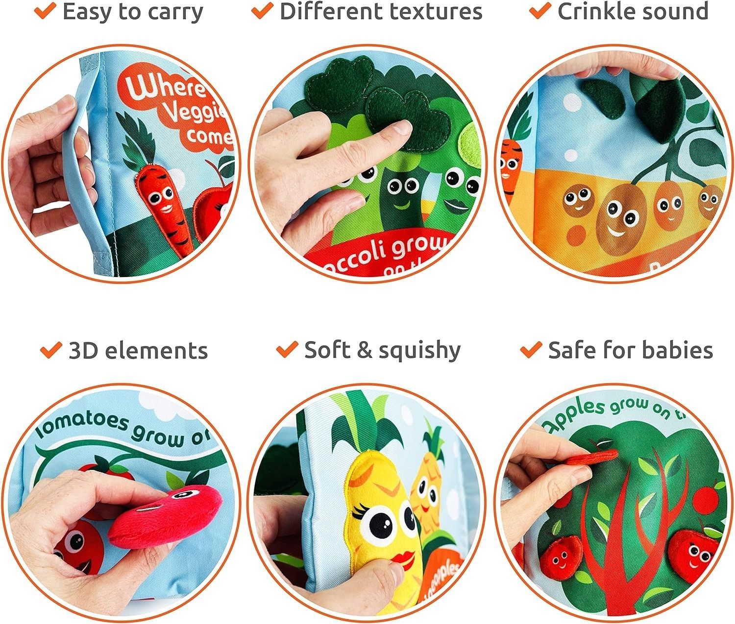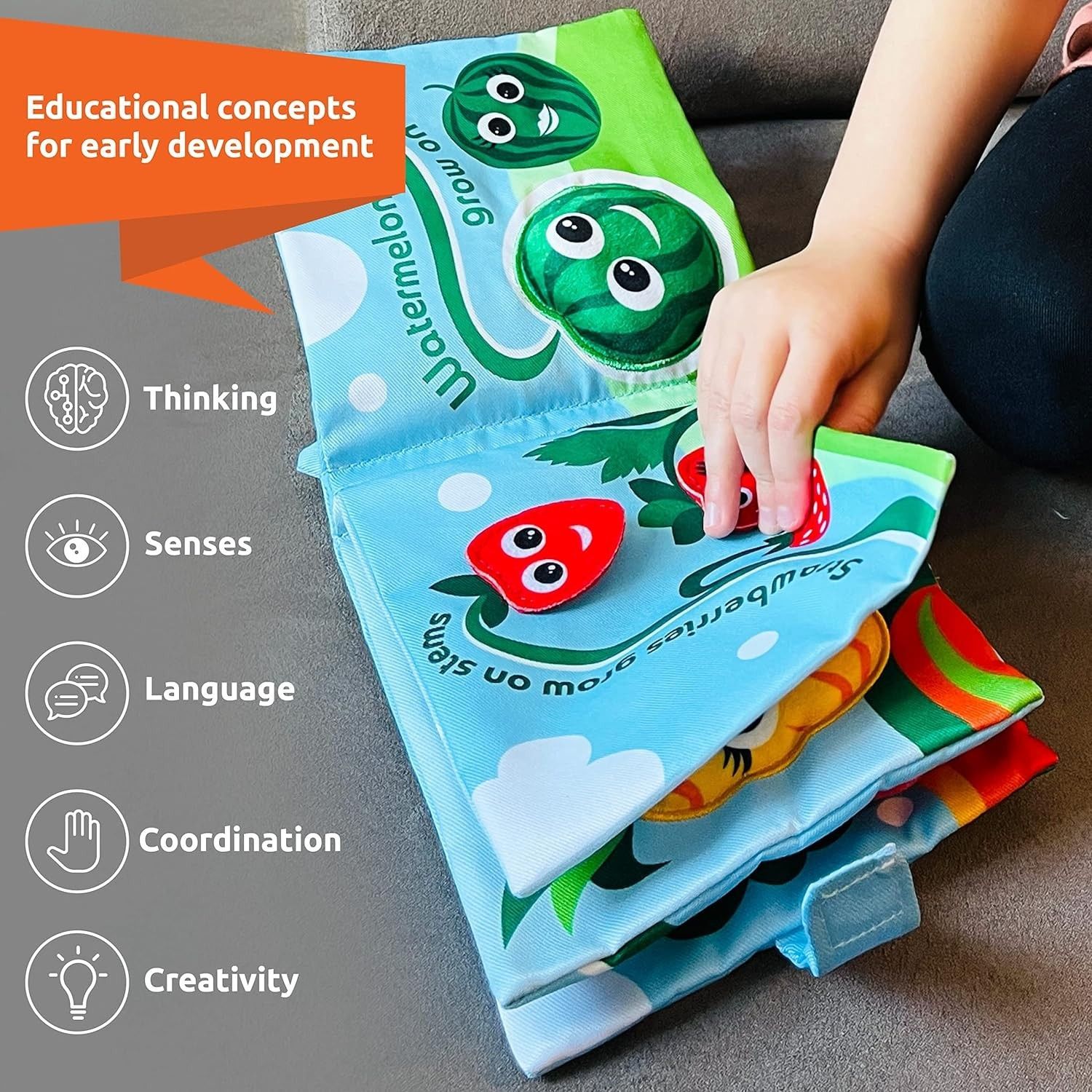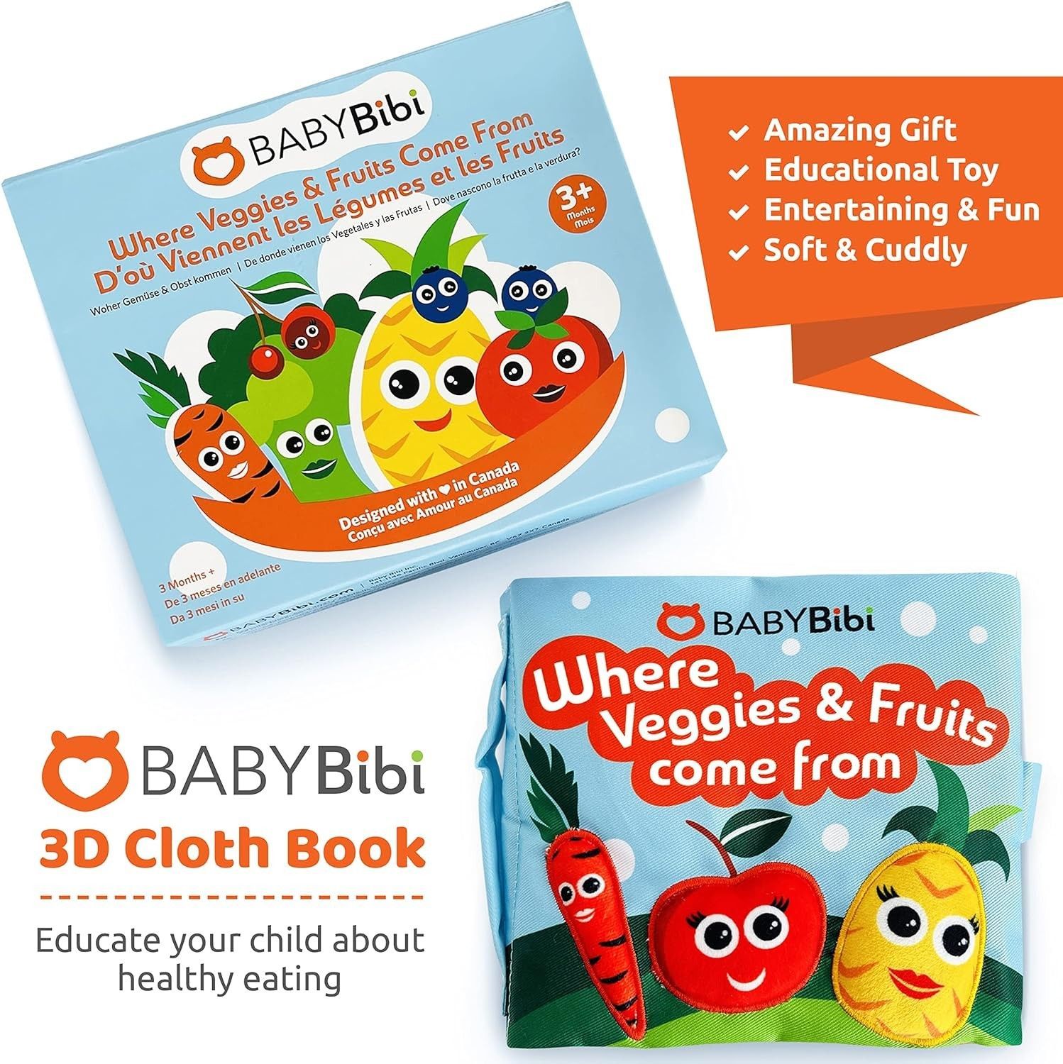 Learn Buch 3 D Stoff Buch Fühl Buch mit 3D Obst und Gemüse Muster - BabyBibi Soft Baby Buch, Touch & Feel Stoffbücher für Babys, Kleinkindbücher Learn Buch 3 D Stoff Buch Fühl Buch mit 3D Obst und Gemüse Muster für besser Denken, Spüren, Sprache, Koordination, Kreativitätt Woher Obst & Gemus... Mehr
