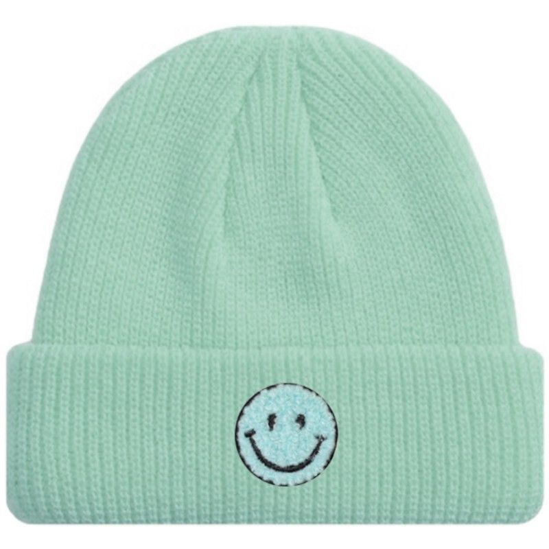 Babyblaue SMILEY Kurze Mütze Trendige-Pastellfarben - Mützen Beanies Hüte Caps Hats Diese kurze Mütze ist in neun trendigen Pastellfarben erhältlich und verleiht Ihrem Look eine verspielte und stilvolle Note. Wählen Sie aus einer Vielzahl von Smiley Chenille-Patch Aufnähern in verschiedenen Farben, darunter Meeresgrün, Rosa, Neonorange, Lila, Türkisblau, Baby Blau, Neongrün, Neon Gelb und Pink, um Ihre persönliche Note hinzuzufügen.
