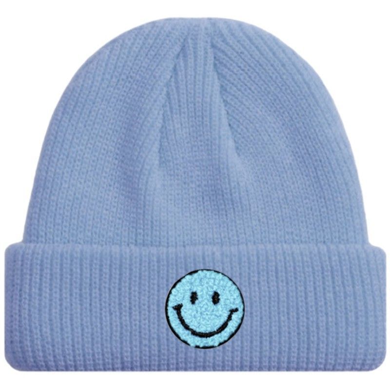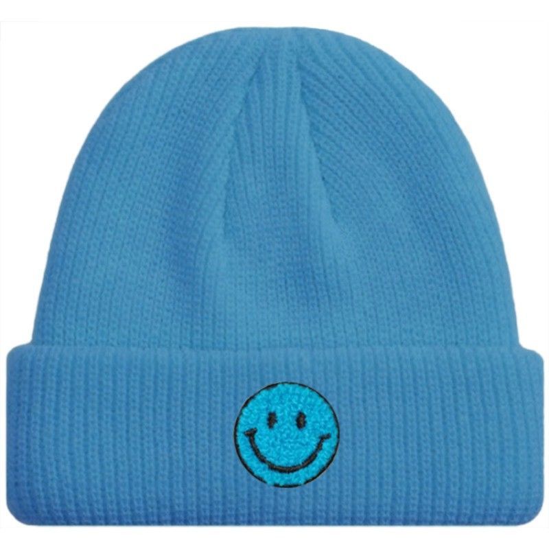 Babyblaue SMILEY Kurze Mütze Trendige-Pastellfarben - Mützen Beanies Hüte Caps Hats