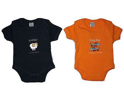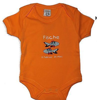 Babybody mit Sternzeichen Motiv blau oder orange Fische Widder Body 50/56