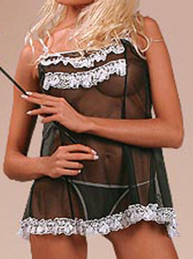 Babydoll Hausmädchen Schwarz Nachtwäsche Dessous Kostüm Junggesellenabschied M/ L