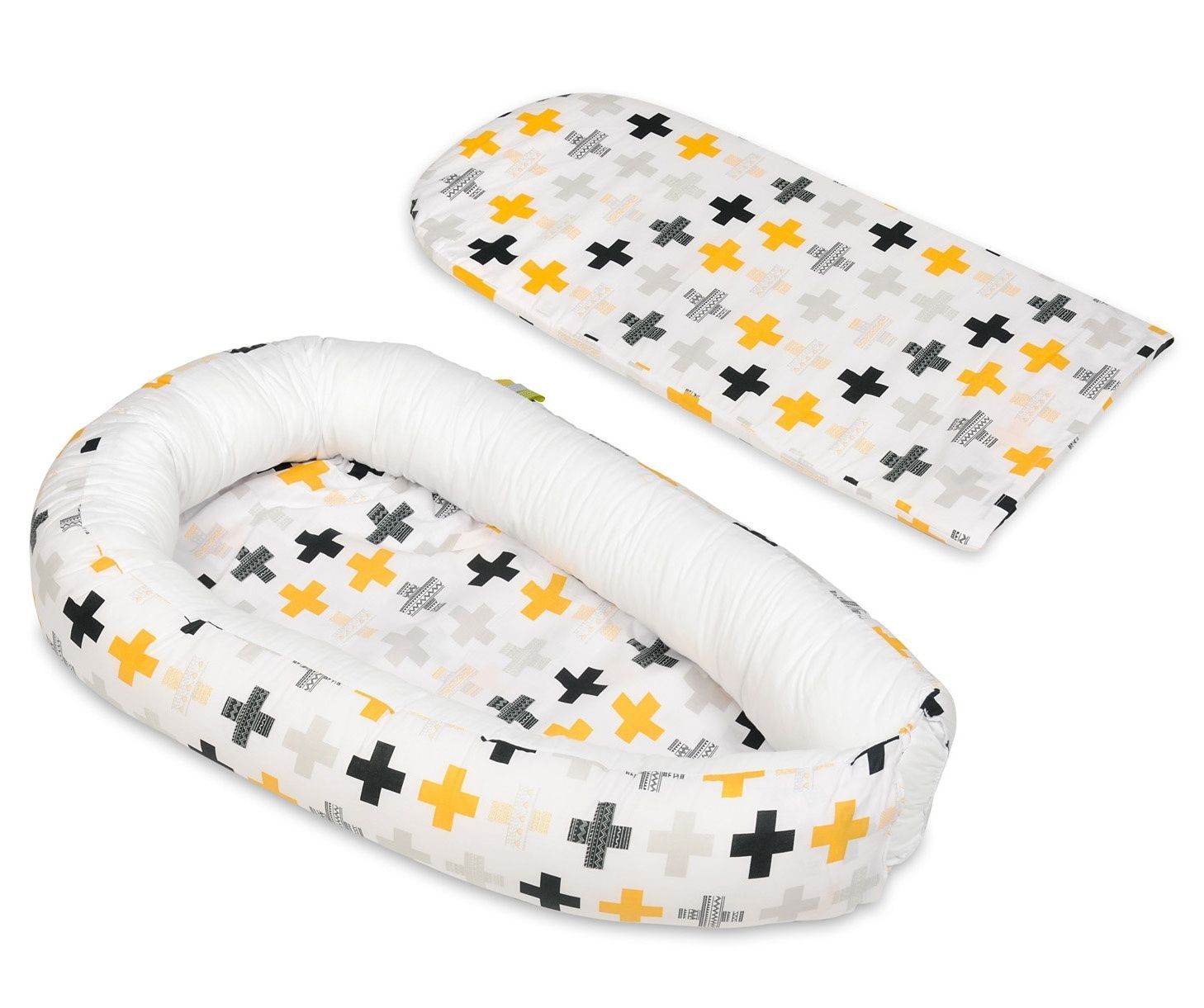 Babynest - Babynest - 0-8 Monate - 100% Baumwolle - 82x54cm - gelbe Kreuze - weiß