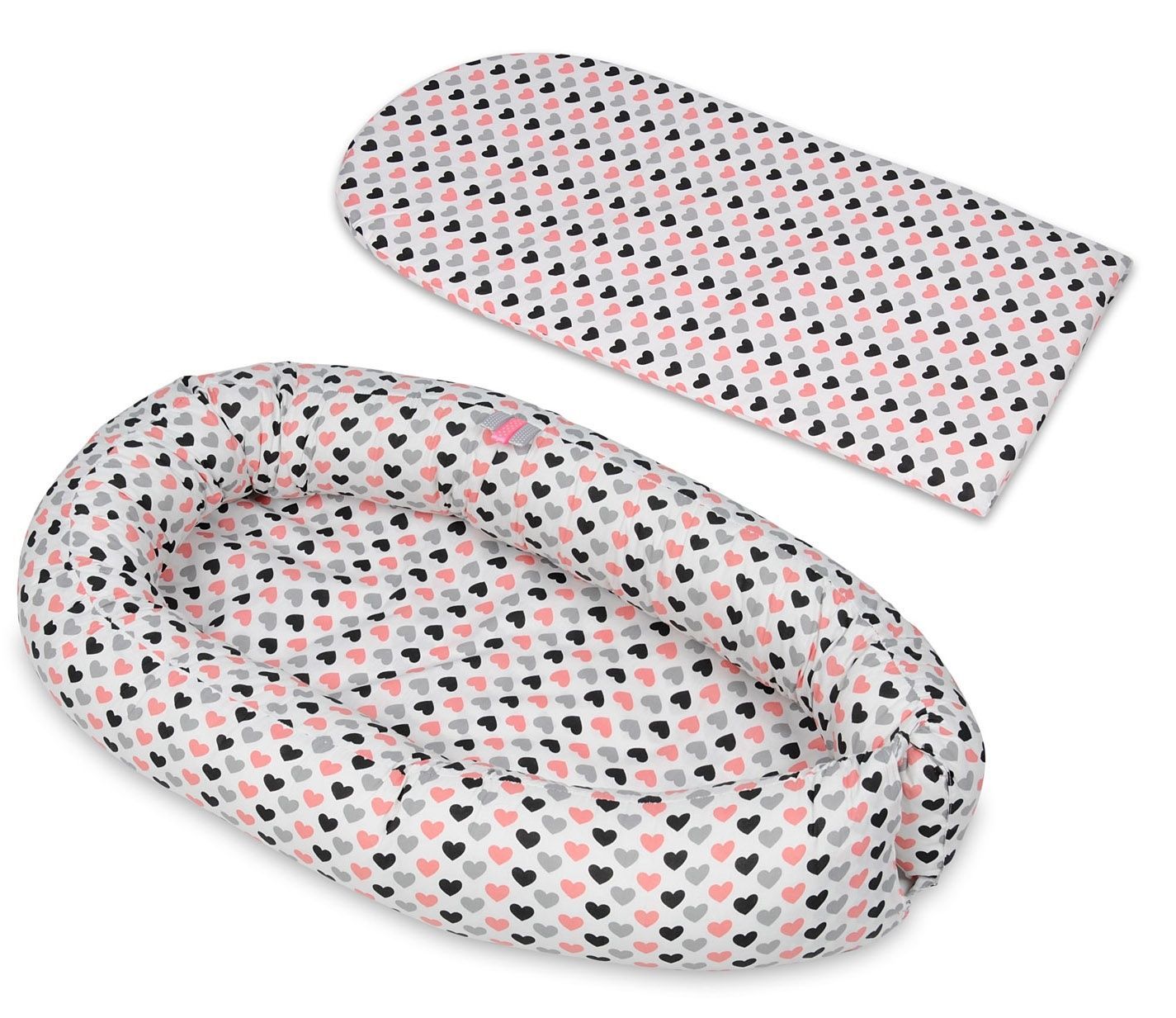 Babynest - Babynest - 0-8 Monate - 100% Baumwolle - 82x54cm - rosa-schwarz-graue