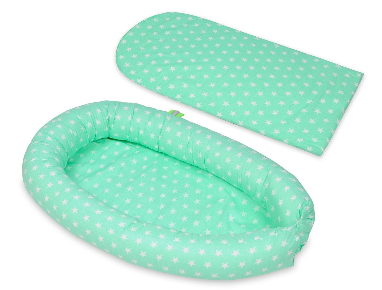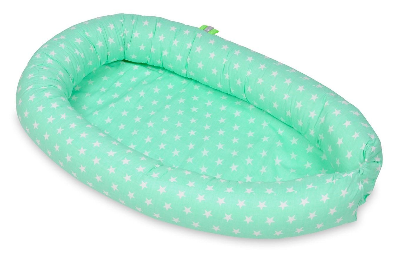 Babynest - Babynest - 0-8 Monate - 100% Baumwolle - 82x54cm - weiße Sterne - mint