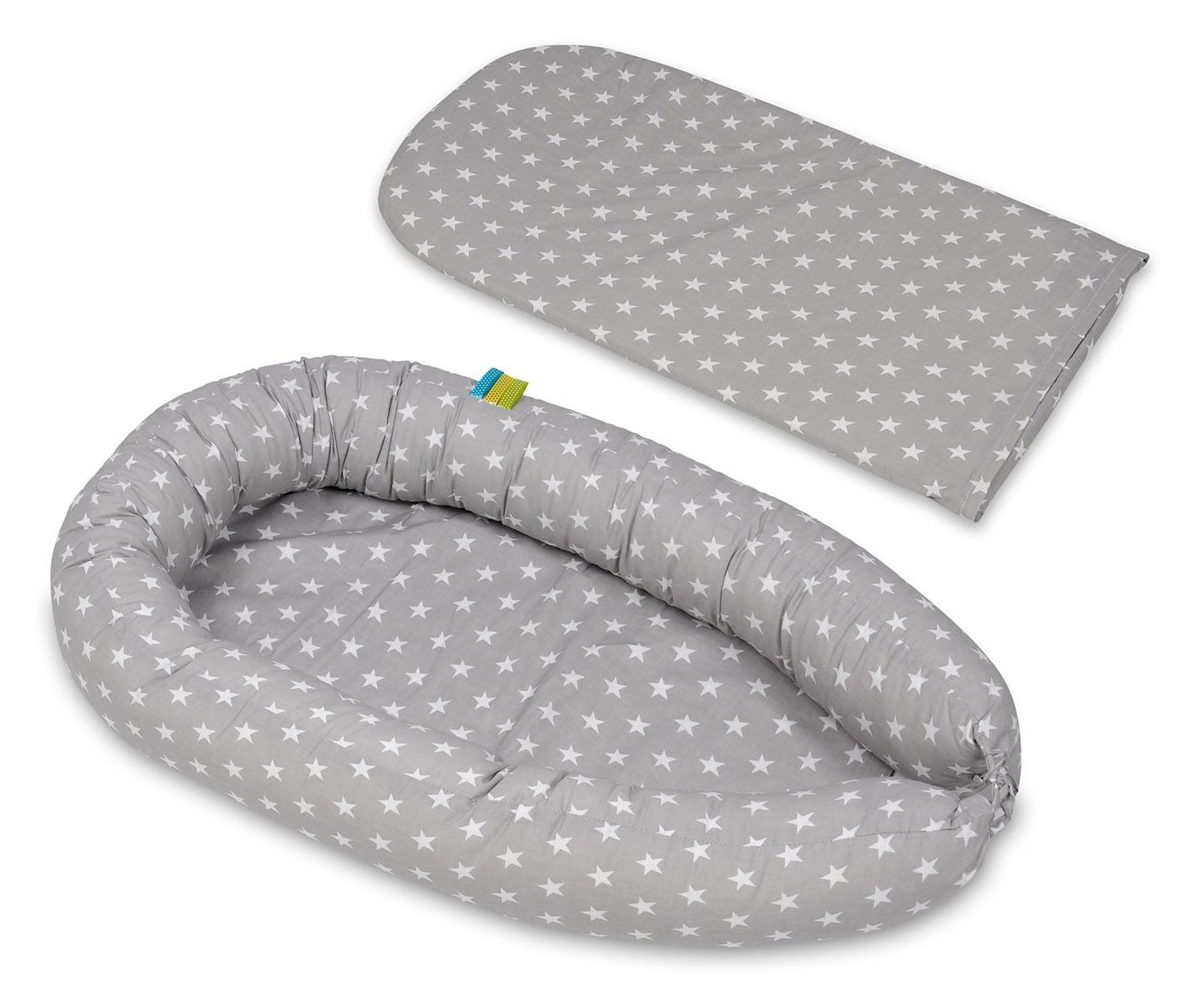 Babynest - Babynest - 0-8 Monate - 100% Baumwolle - 82x54cm - weiße und graue Sterne