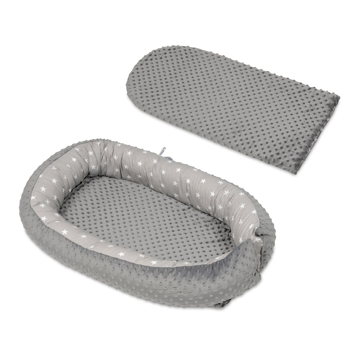 Babynest - Babynest - 0-8 Monate - 82x54cm - weiße Sterne auf grau - grau