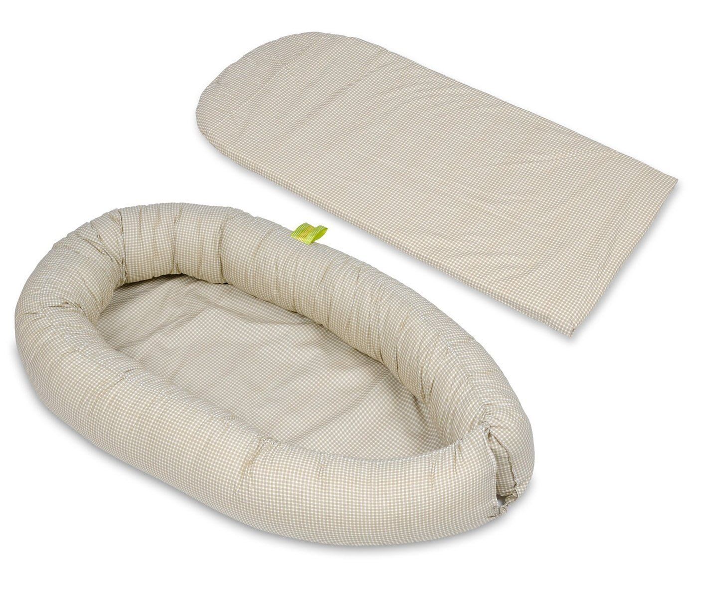 Babyshower Geschenk - Schönes Babynest in Beige Karo - 100% Baumwolle - 82x54cm