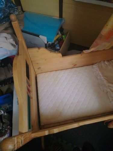 verkaufe eine schöne Babywiege aus Holz. Maße: Länge ca.96 cm, Breite ca 51 cm Liegefläche: 90 x 45 cm Dabei ist: Himmel-Gestell und Stoff, Kissen-45 x 45 cm und eine Matratze. Die Matratze hat ein par Flecke, welche evtl. bei Reinigung raus gehen könnten. Nur Abholung in 74535. Preis ist verhandelb