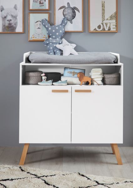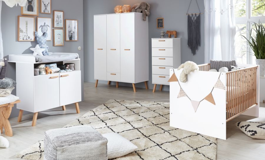trendteam Babyzimmer Kinderzimmer in weiß Buche Set Wickelkommode Babybett Juniorbett Mats