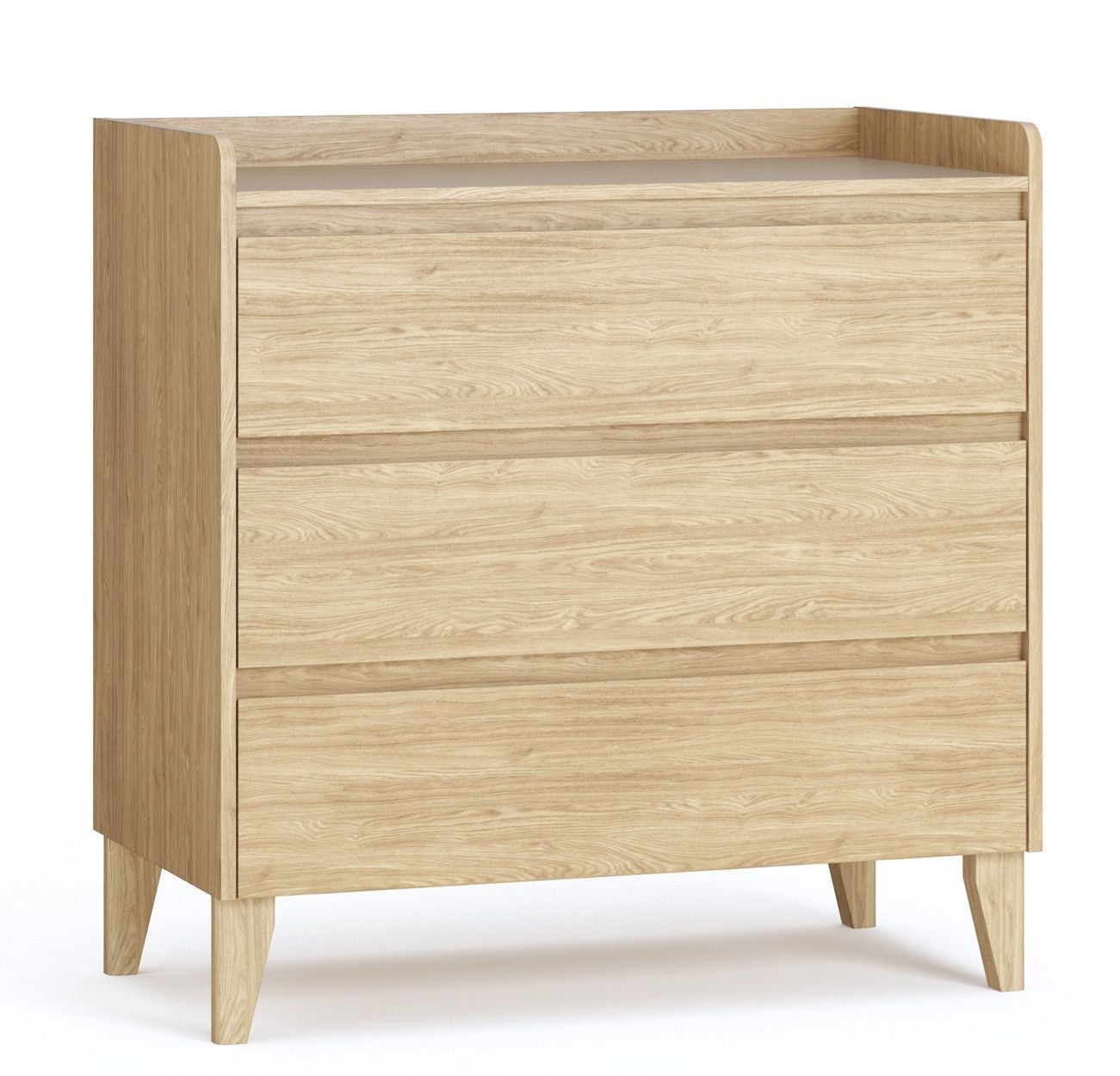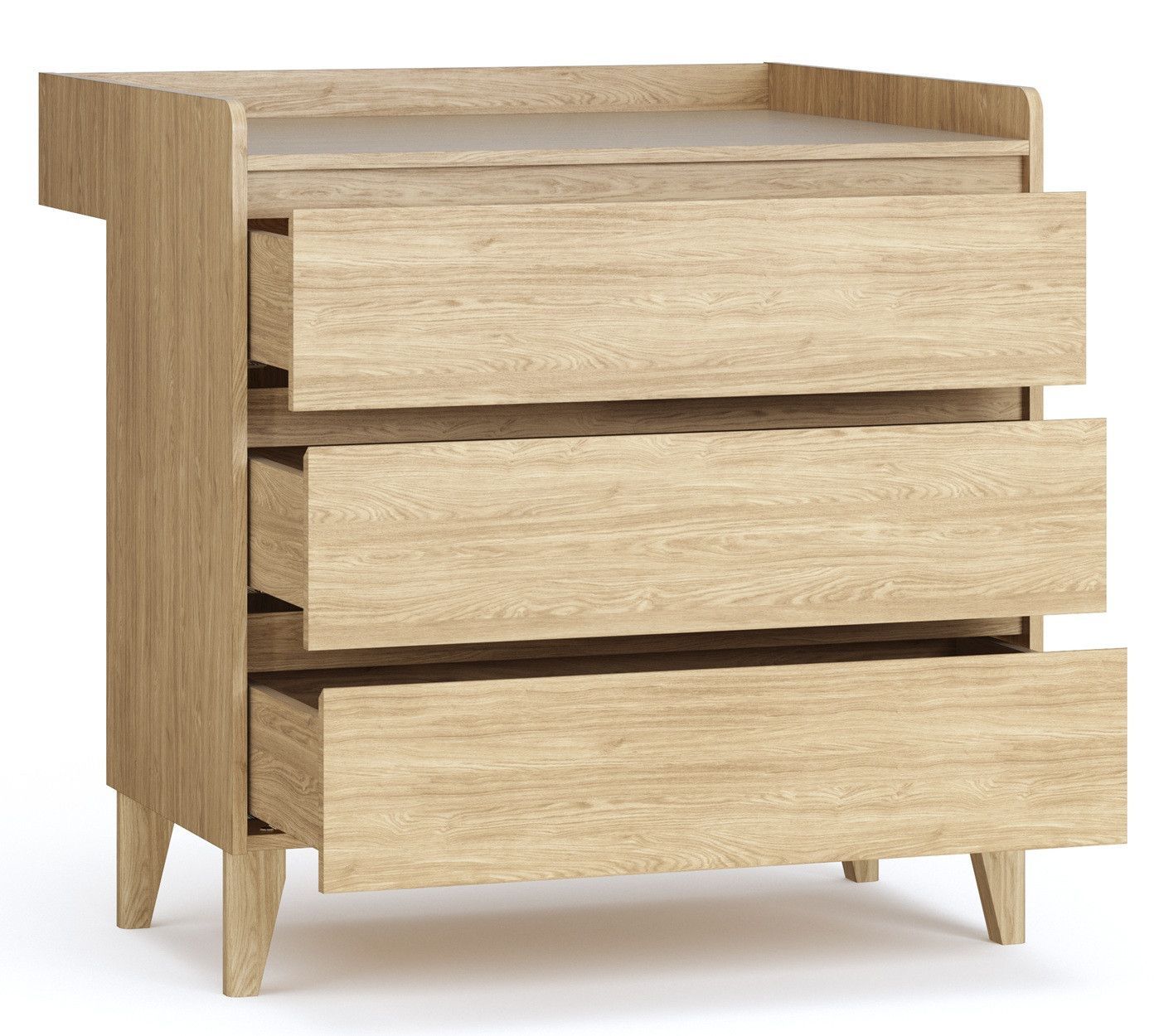 Babyzimmer komplett MAYA Set A Zum 4-tg Babyzimmer Set A gehören: 1. Schrank 2-türig 2. Kommode mit 3 Schubladen 3. Wickelansatz 4. Babybett 140x70 + Juniorbett-Umbausatz Farbe: - Eiche geölt Material: - Laminierte Spanplatte mit ABS-Kanten 16mm stark Füße: Holz massiv Rückwand: HDF-Platte 2,5mm Hoc