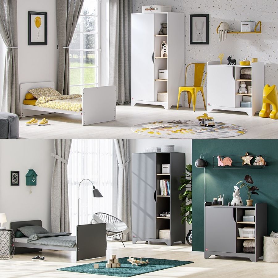 Babyzimmer Kinderzimmer komplett Set LEXY weiß grafit Schrank Kommode Bett