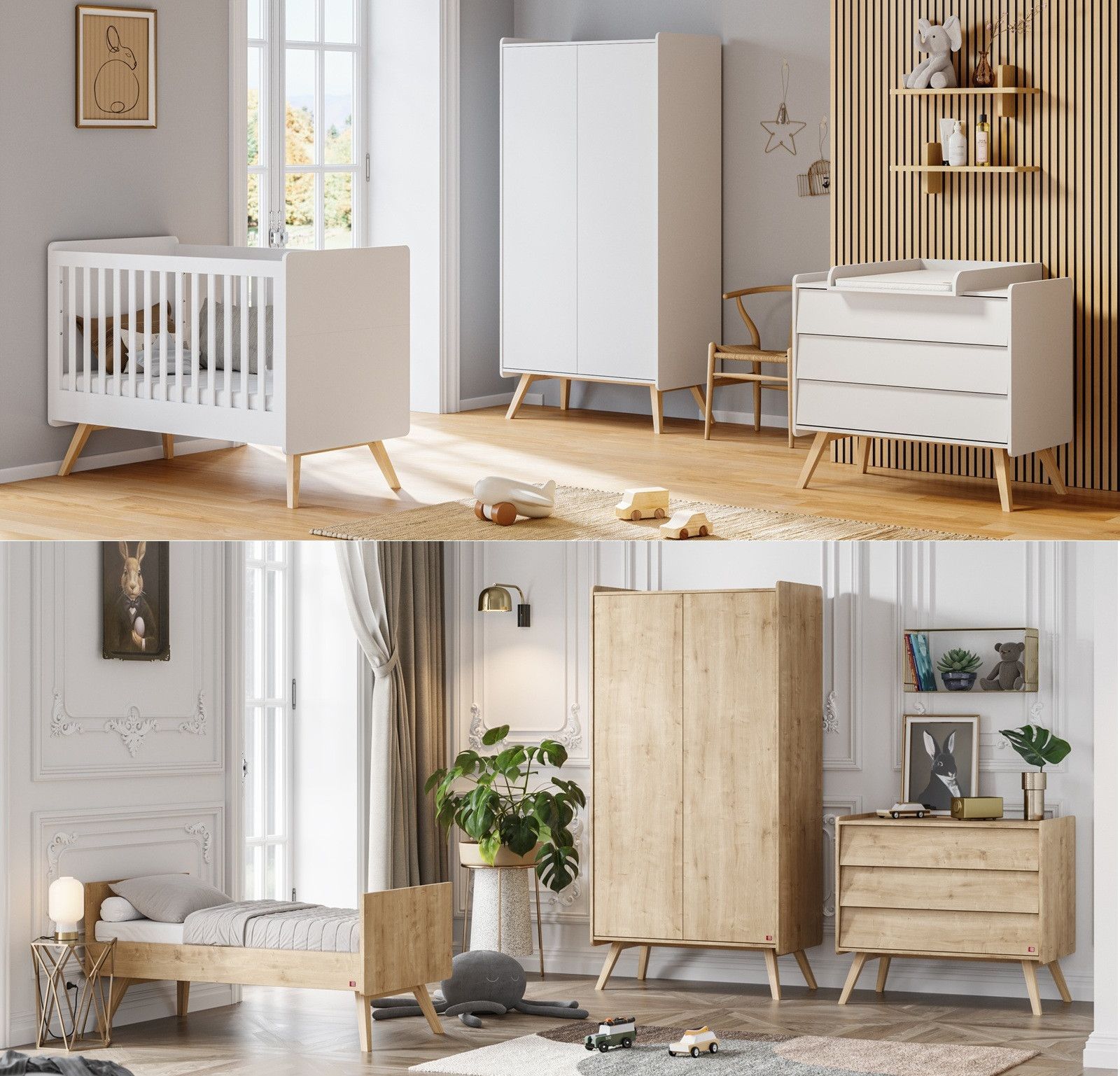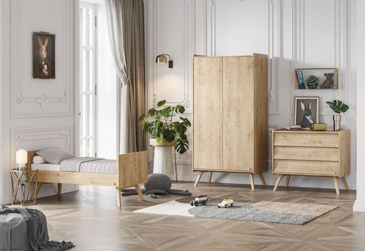 Babyzimmer Kinderzimmer komplett VIENNA Set A weiß eiche Schrank Kommode Bett