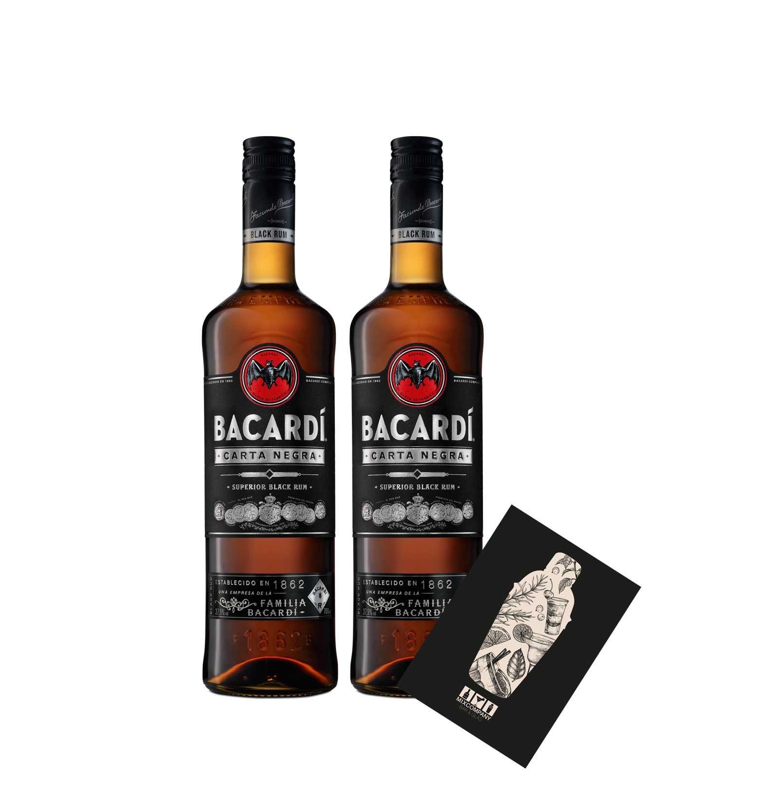 Bacardi Bacardi 2er Set Carta Negra Rum 2x 0,7L (37,5% Vol) Superior Black Rum - [Enthä
