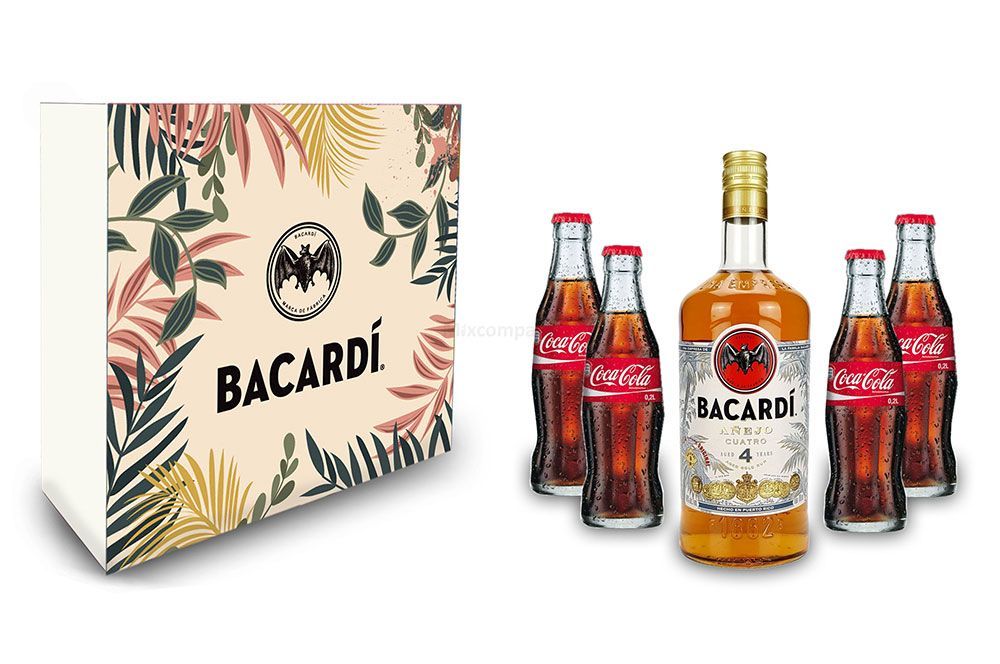 Coca Cola Bacardi Geschenkset - Bacardi Anejo Cuatro 4 Jahre Rum 0,7l 700ml (40% Vol) + 4