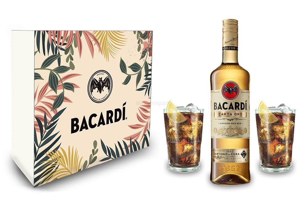 Bacardi Bacardi Geschenkset - Bacardi Carta Oro Gold Rum 0,7l (40% Vol) + 2er Kunststof