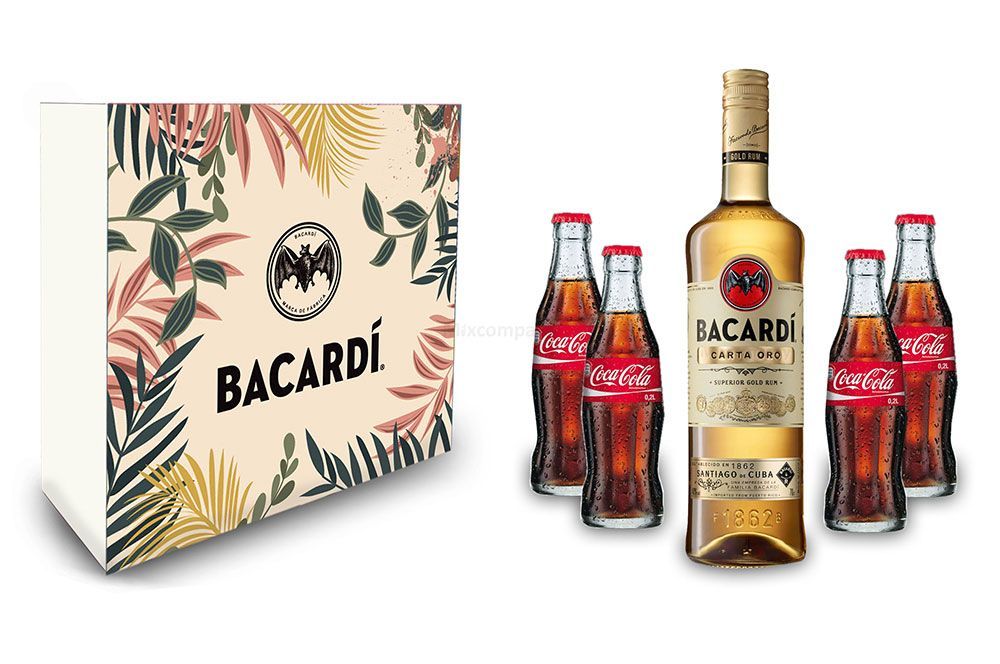 Coca Cola Bacardi Geschenkset - Bacardi Carta Oro Gold Rum 0,7l (40% Vol) + 4x Coca Cola