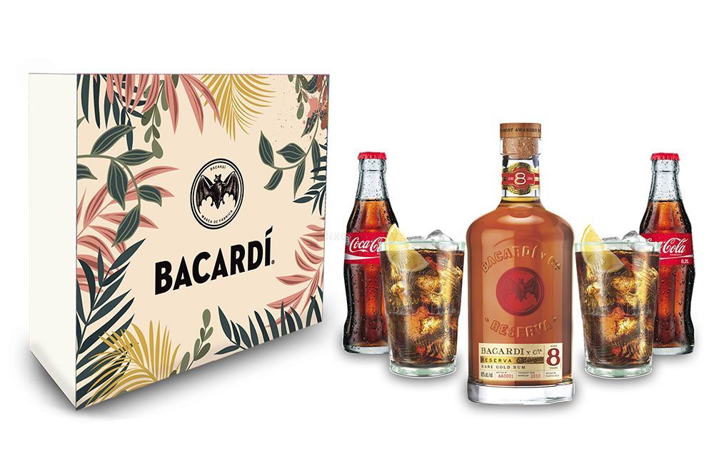Coca Cola Bacardi Geschenkset - Gläser / Cola / Bacardi Ron 8 Anos Gran Reserva 8 Jahre R