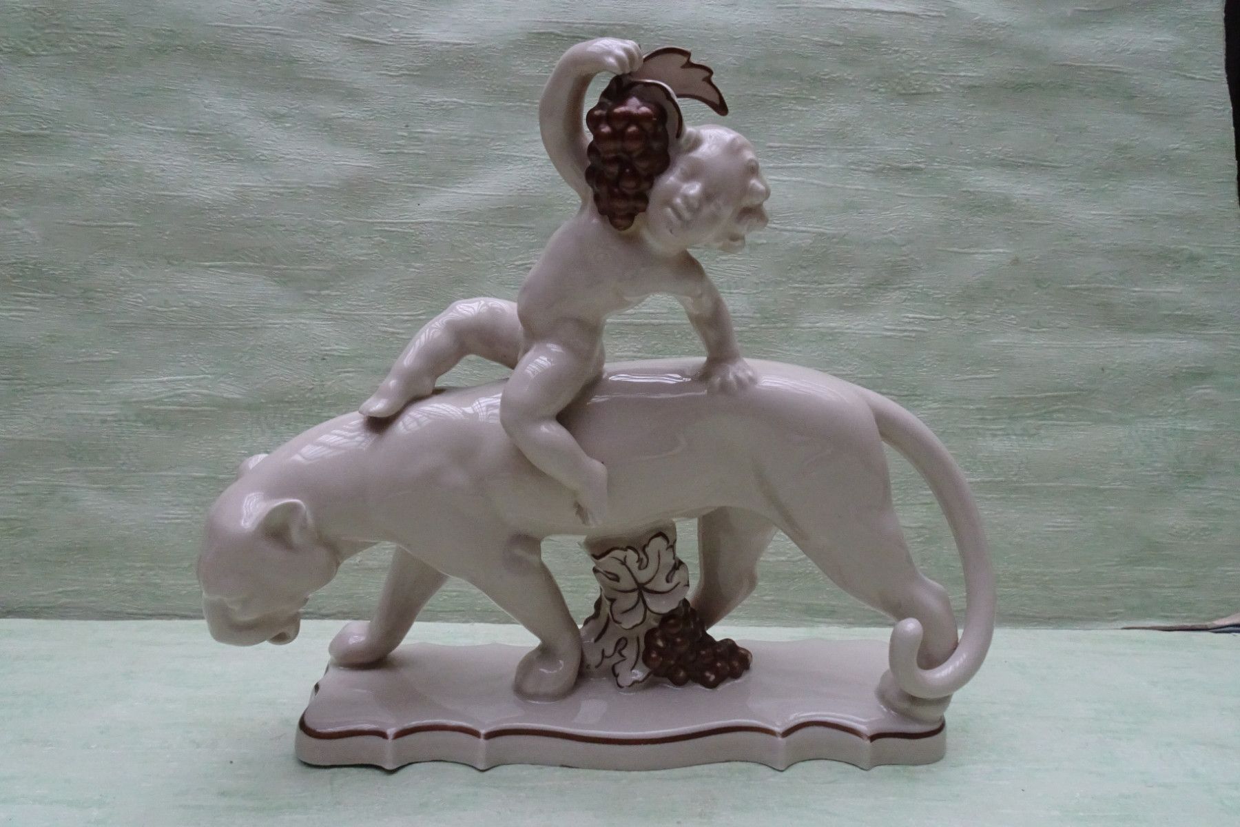 Bacchus Putte Panther Art Deco NeuTettau 30 x 30 cm