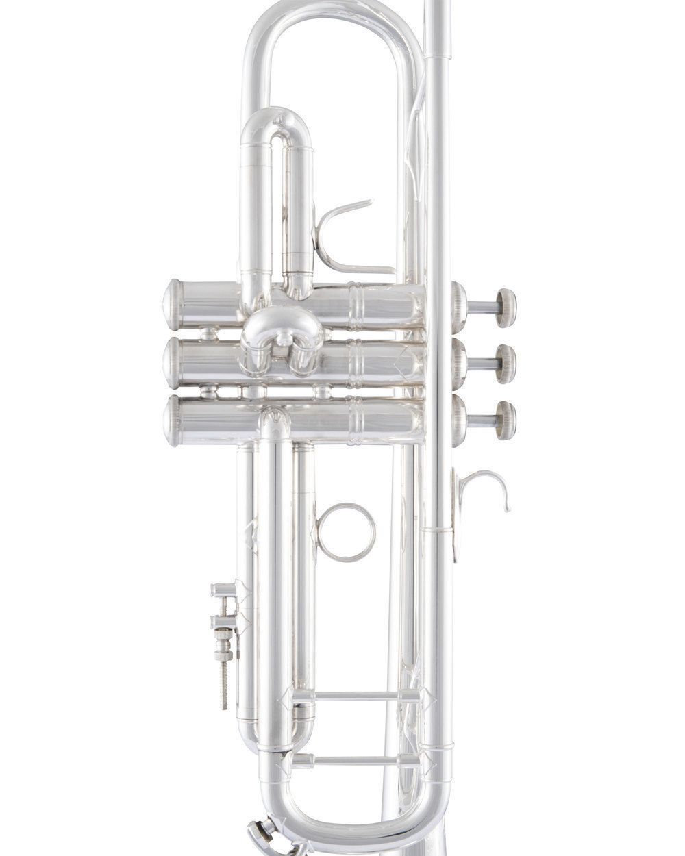 Vincent Bach Bb-Trompete 190-43 Stradivarius ML Bohrung .459? = 11.66 mm Schallstück Durchschitt 4 13 16' = 122,24 mm 43er Schallstückform mit seitlicher Lotnaht, 25er Mundrohr Einteiliges handgehämmertes Schallstück mit Stahlring im Rand Monel-Ventile, zweiteilige Ventilbüchsen Messing Neusilber Br