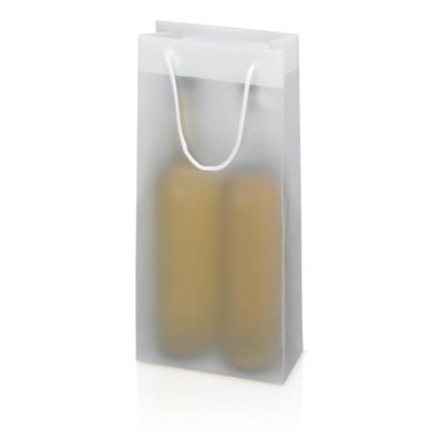 10 x Tragetasche Geschenktüte für 2 Flaschen 170x85x360 mm Frost Transparent