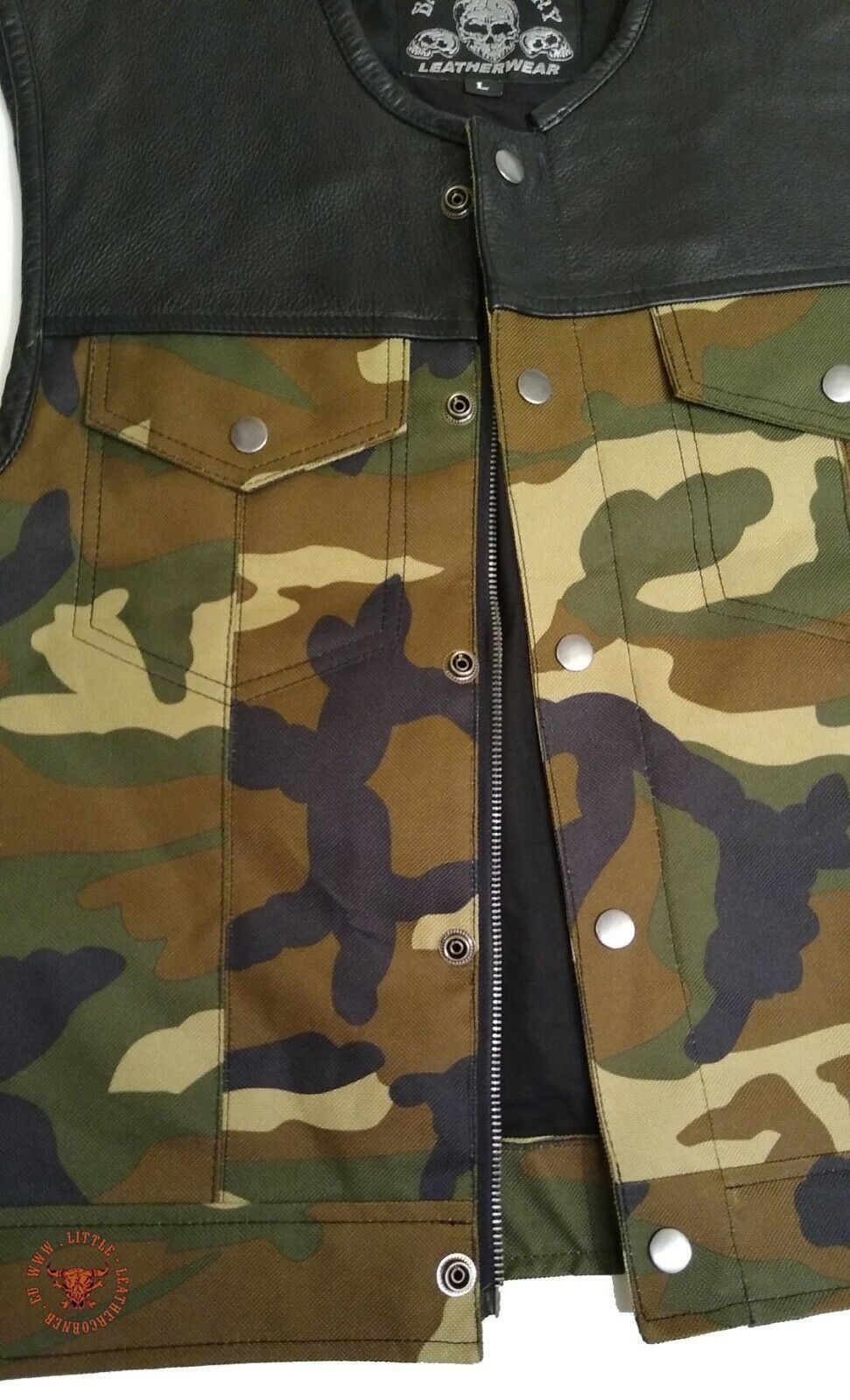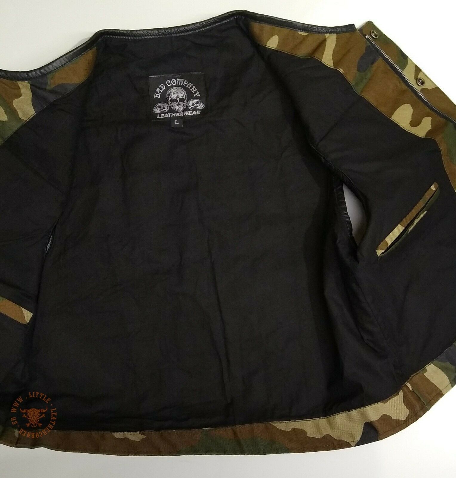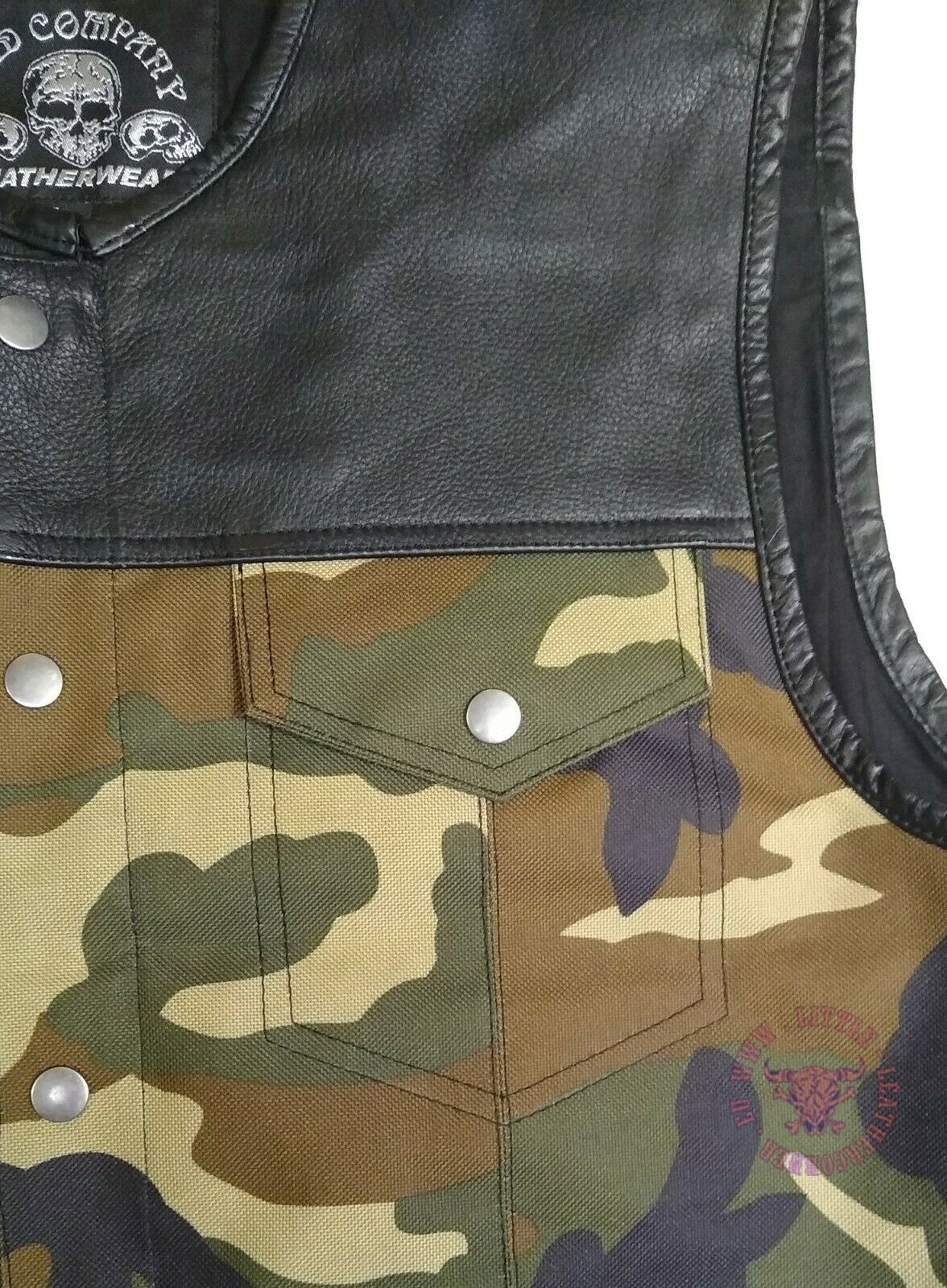 Leder Bad Company-Leatherwear- Cha Cha Leder Lederweste Modell "Bad Co Zip Camo" im Stil einer Jeansweste in Leder/Textil